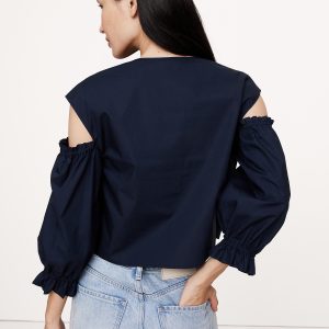 Cotton Poplin Boatneck Asymmetrical Top