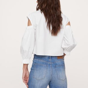 Cotton Poplin Puff-Sleeve Cropped Top