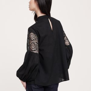 Cotton & Lace Mock-Neck Top