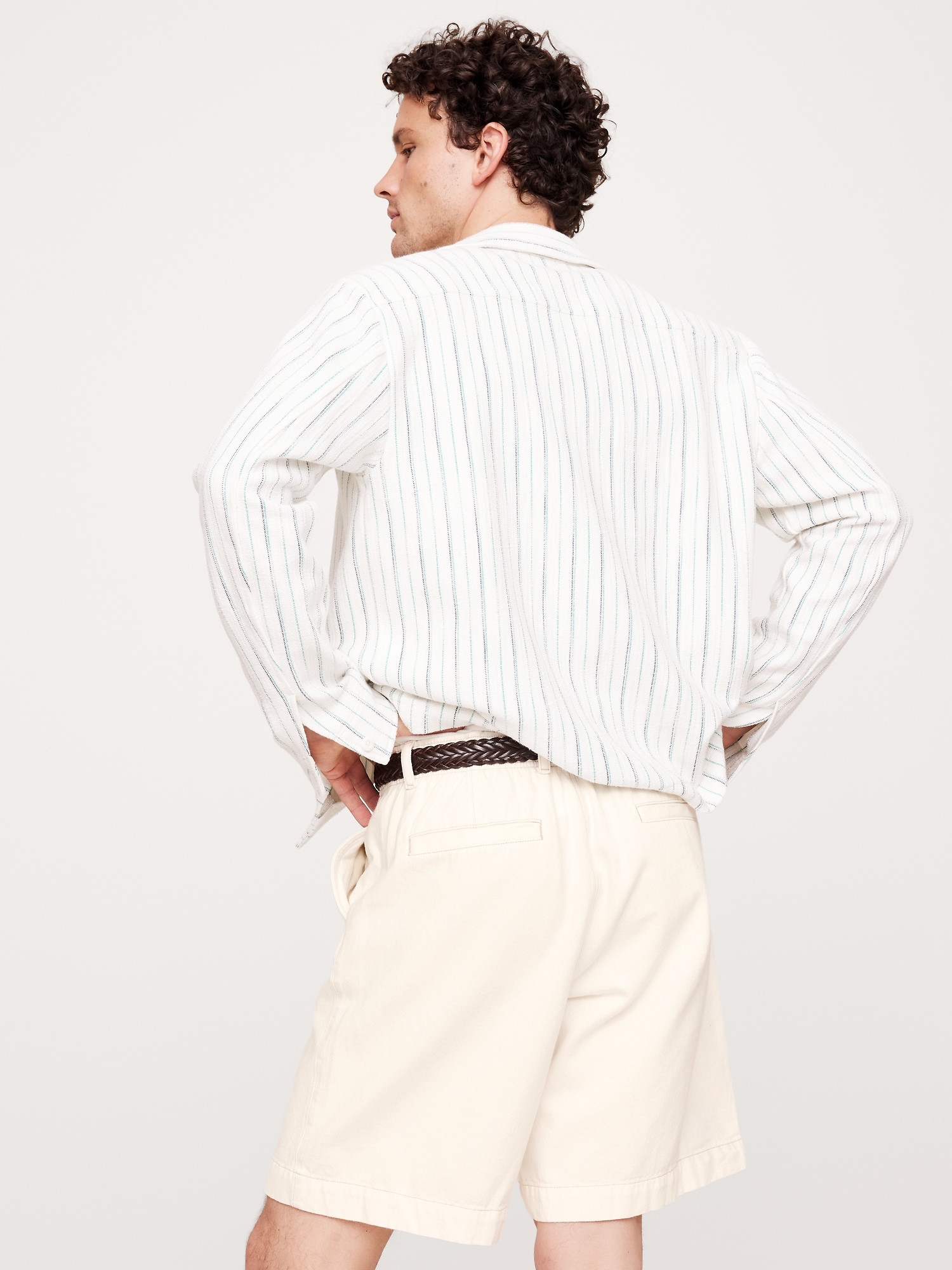 An easy Bermuda short, just in time for summer. These are cut from a soft denim fabric we fell hard for because it looks like the best vintage pieces. Plus, we added a hidden elastic and interior drawstring to the waistband for a custom fit.