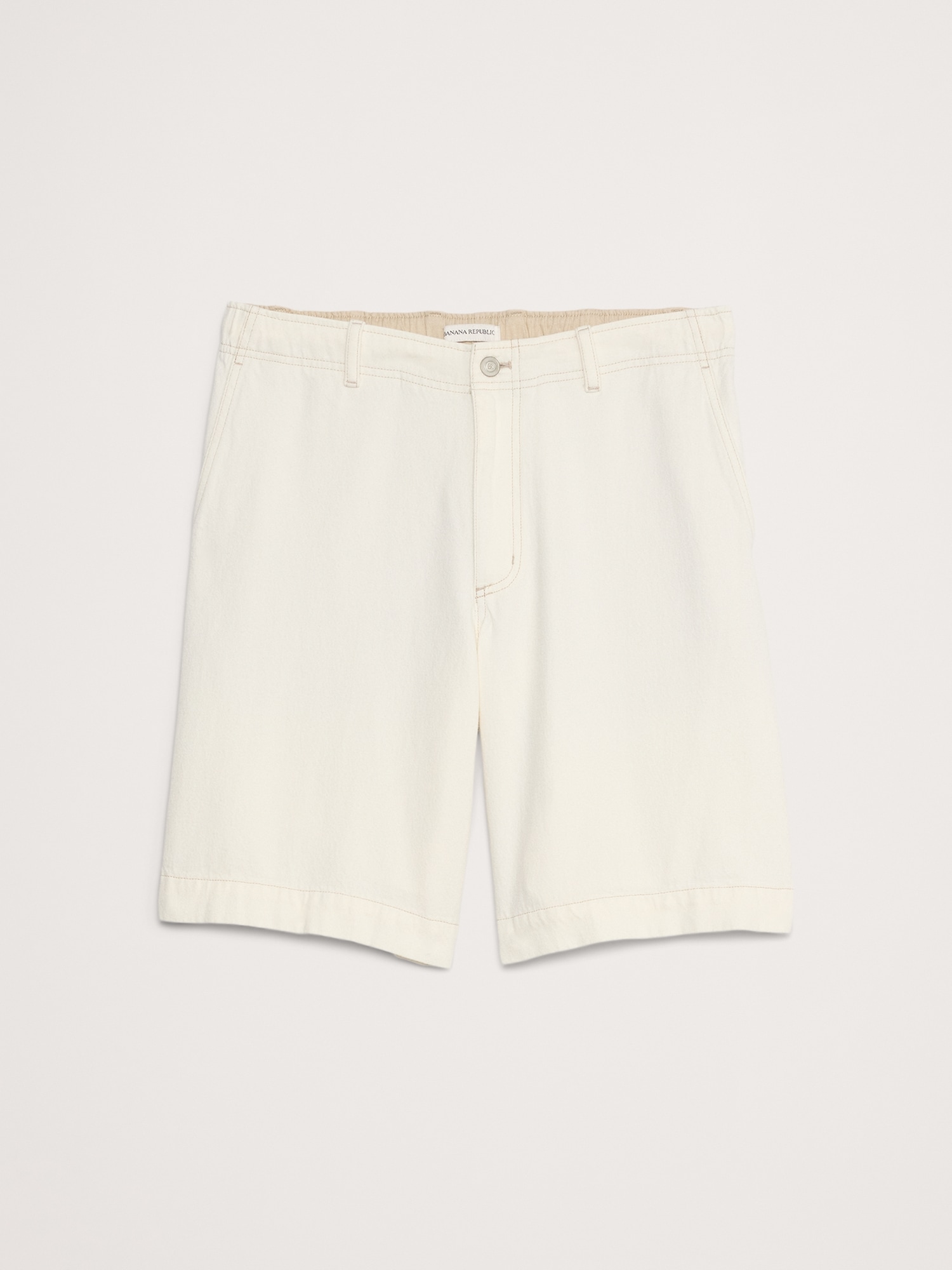 Concealed elastic at back waist with internal drawstring.