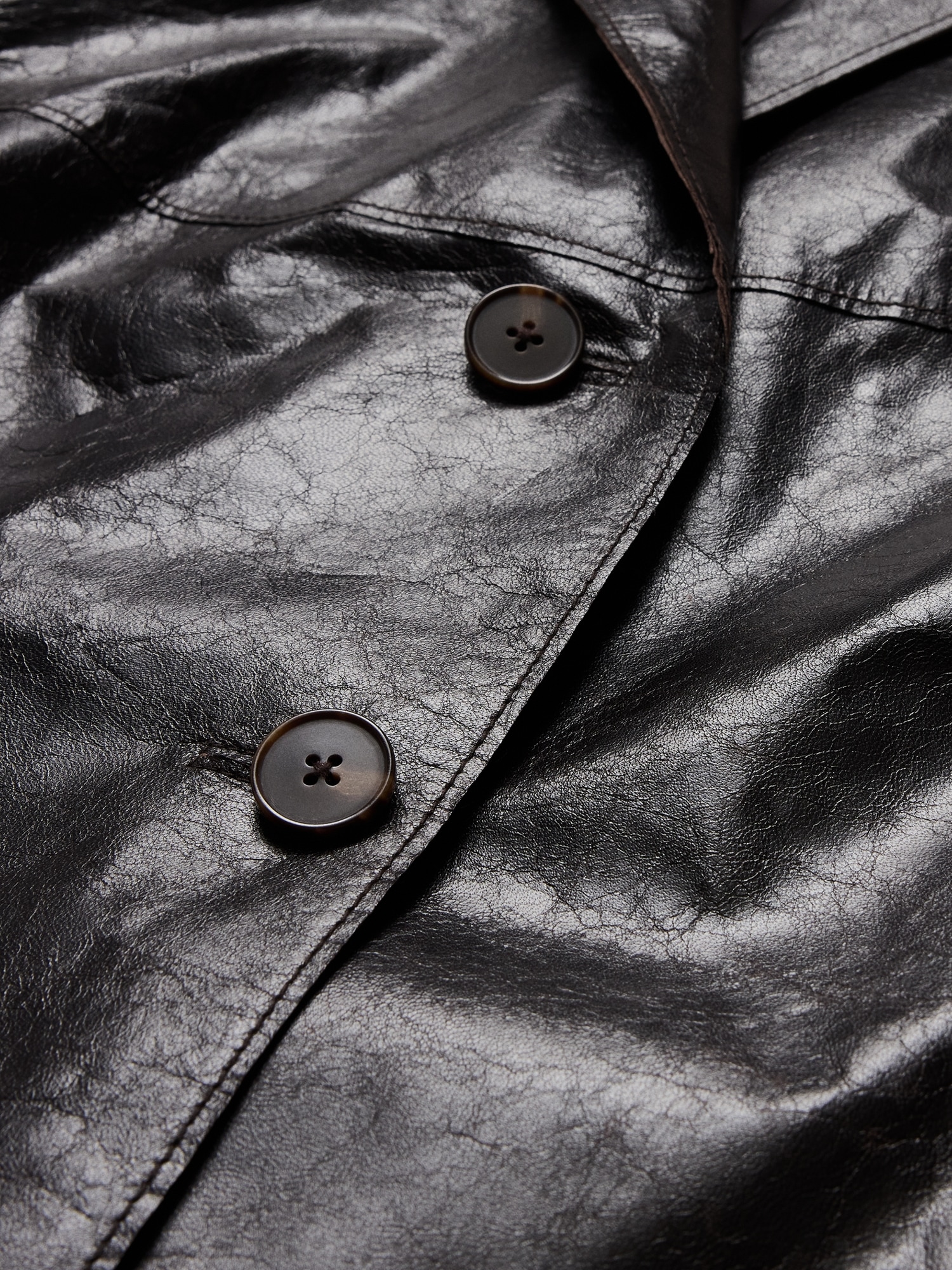 We looked to the archives to style this luxurious leather blazer. The style itself is classic and the silhouette is minimalist because the lambskin leather here is so special.