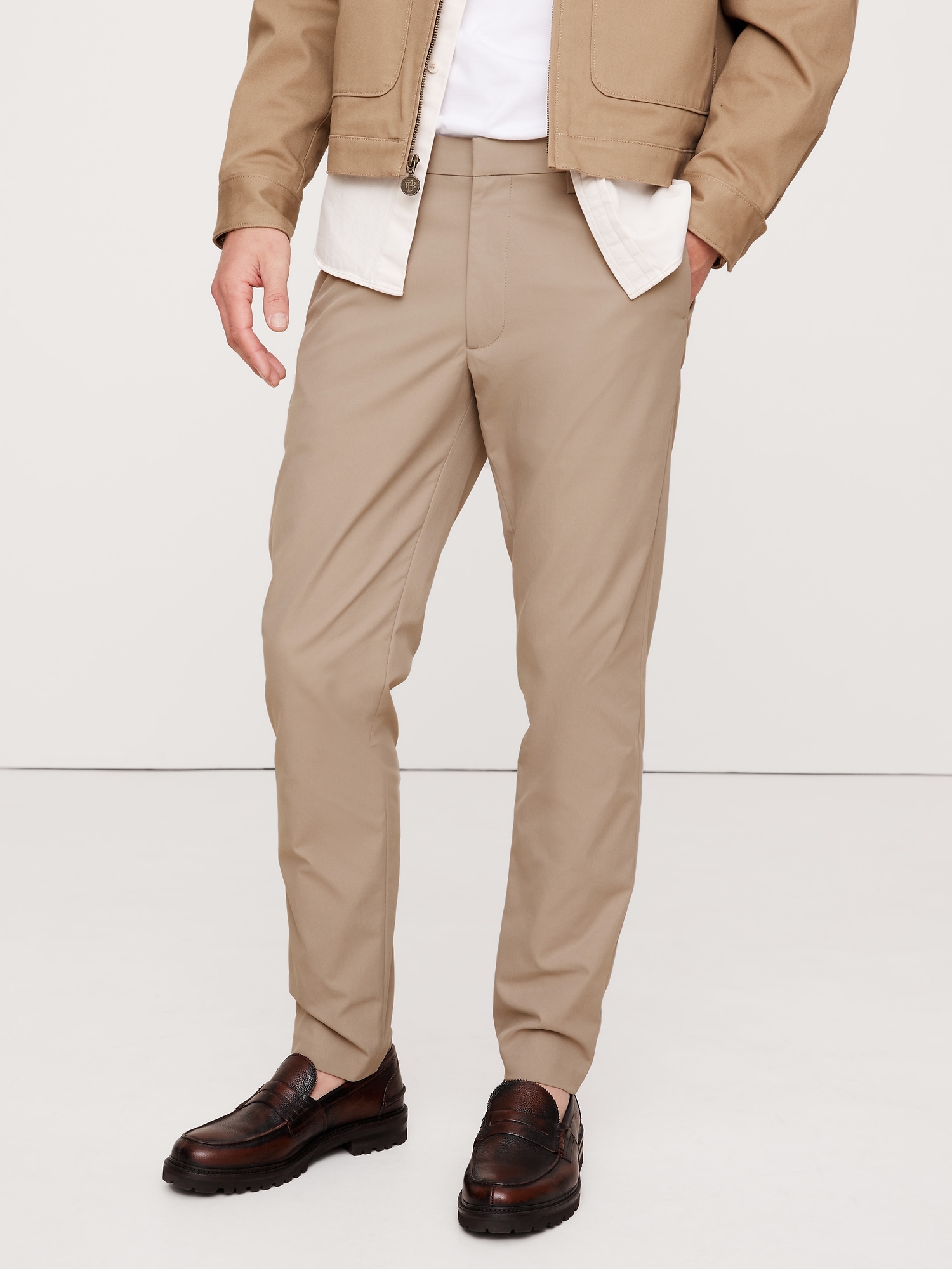 If chinos could be overachievers—this lightweight chino does the most thanks to a Solotex® twill fabric that balances performance, comfort, and a put-together appearance. Plus, our designers added concealed elastic at the back waist for a custom fit. Water-Repellant, Breathable, 4-Way StretchSlim Fit: A slim fit designed for those who like more room through the seat and thigh. Mid-rise (11\”), slim though hip and thigh with a tapered leg.