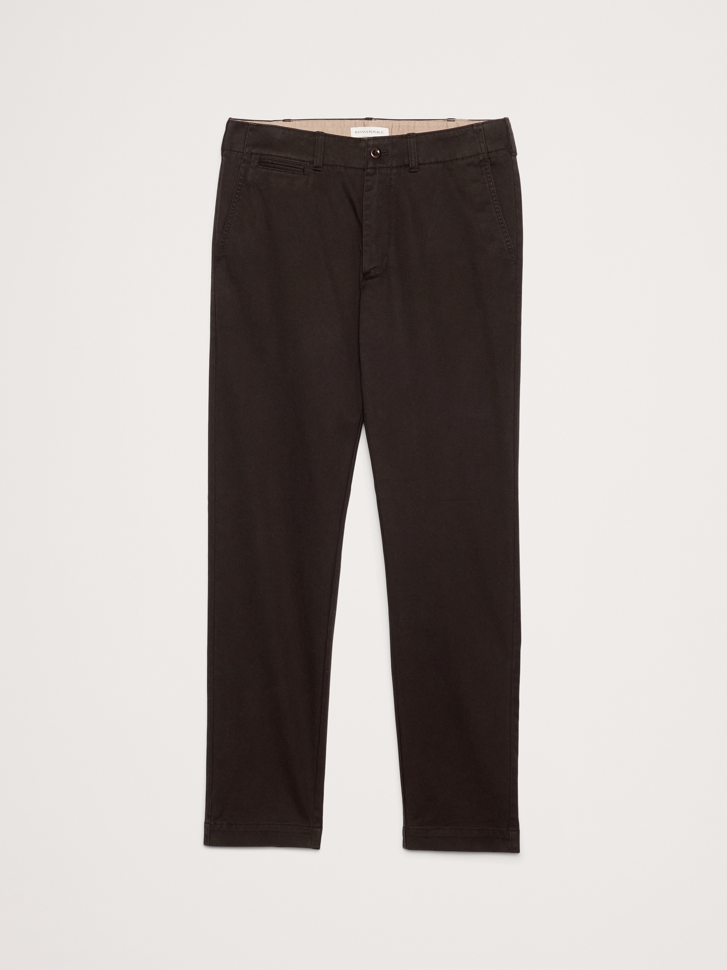 Modeled after a vintage pair of officer’s chinos, we cut this slim-fit pant from a stretchy, organic cotton twill. We added an extra stone wash for a broken-in look and an already-loved feel.