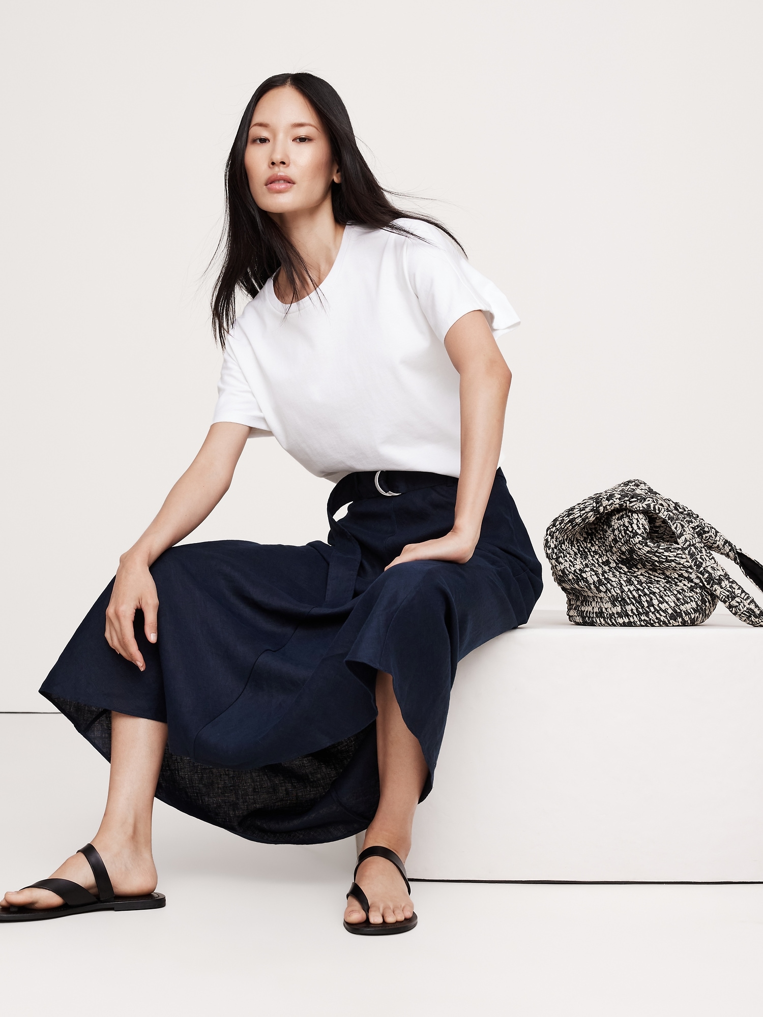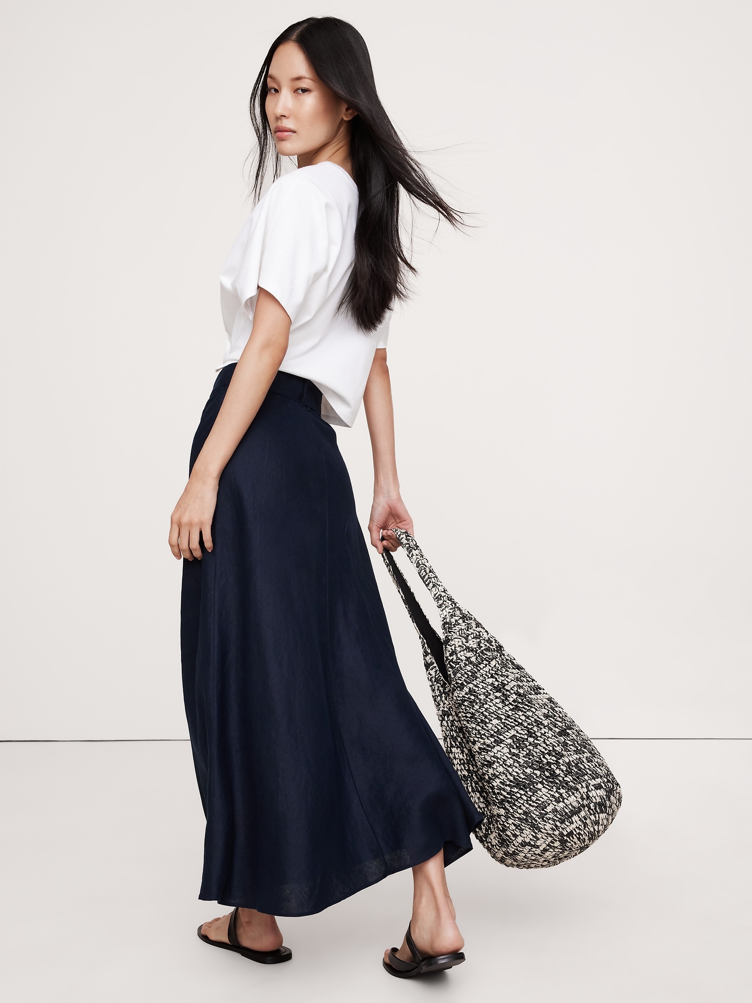 Belted Linen Maxi Skirt