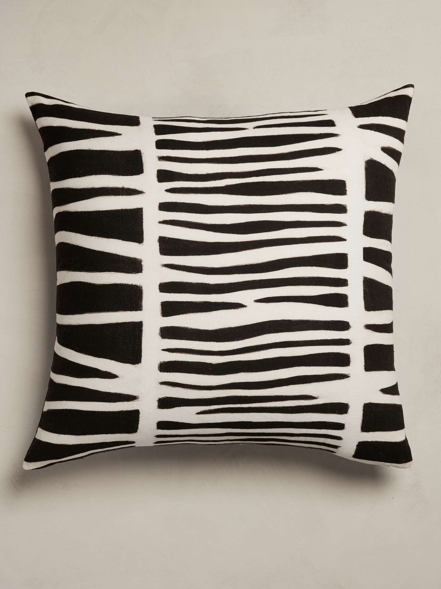 Proof that beauty can be found everywhere, even the earth, the artisans of the Le Ndomo social enterprise in Mali use traditional mud-dyeing and weaving to create eye-catching Bogolan mud cloth pillows of lush cotton. An intricate and ancestral practice, mud-dyeing begins with the collection of mud from riverbeds, followed by a lengthy fermentation in clay pots for up to a year, which is then used like paint to create bold, beautiful patterns. LE NDOMO: Crafted in partnership with Mali’s Le Ndomo, a social enterprise founded in 1990 to both preserve the ancestral mud-cloth dyeing practices, and create employment opportunities through training young people who have not had the chance to study. Invisible zip closure. Pillow inserts are sold separately and are sized slightly larger than our pillow covers to create a fuller effect. Handmade in Mali. #618878