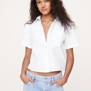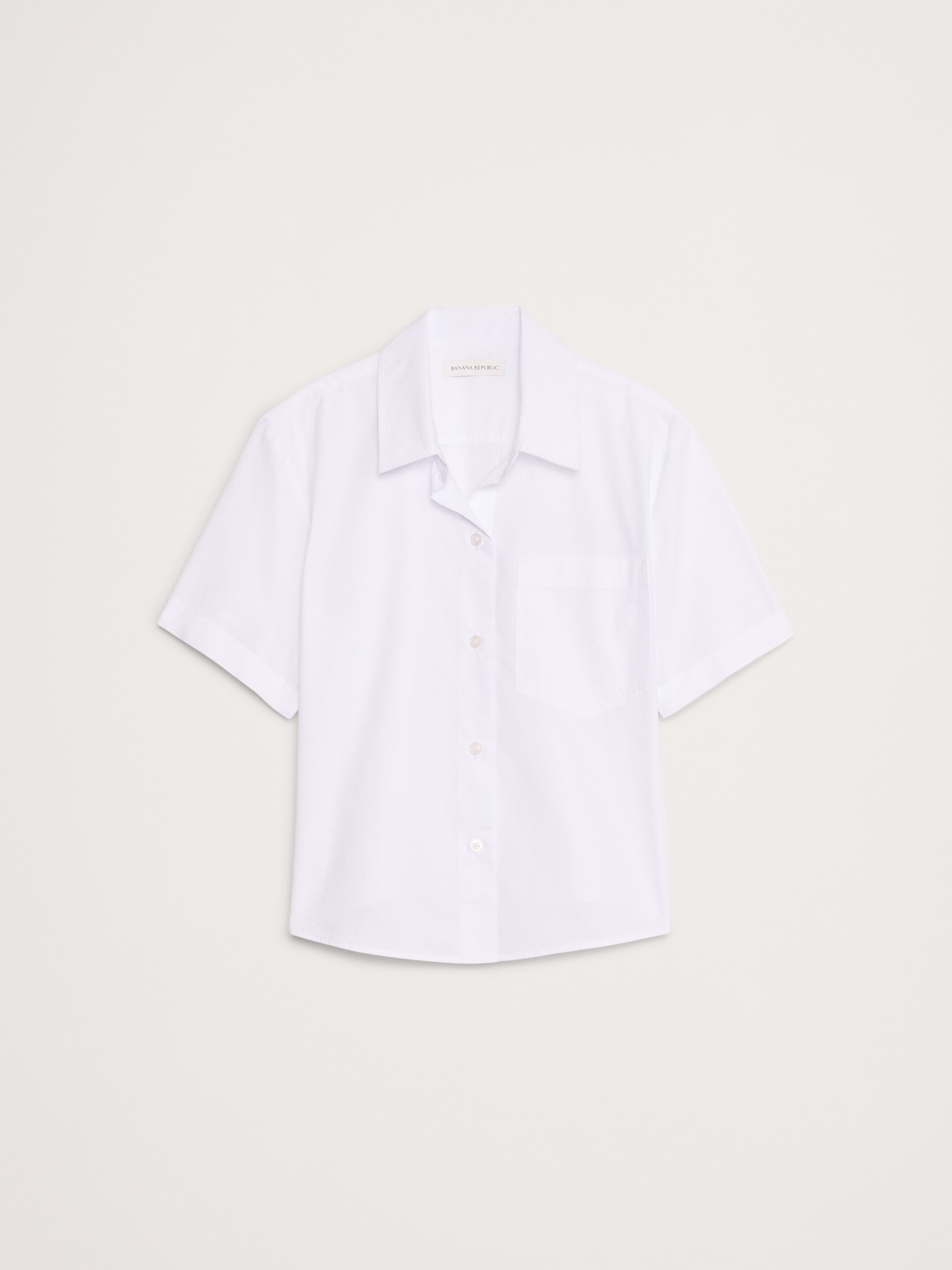 Boxy Cotton Poplin Short-Sleeve Shirt