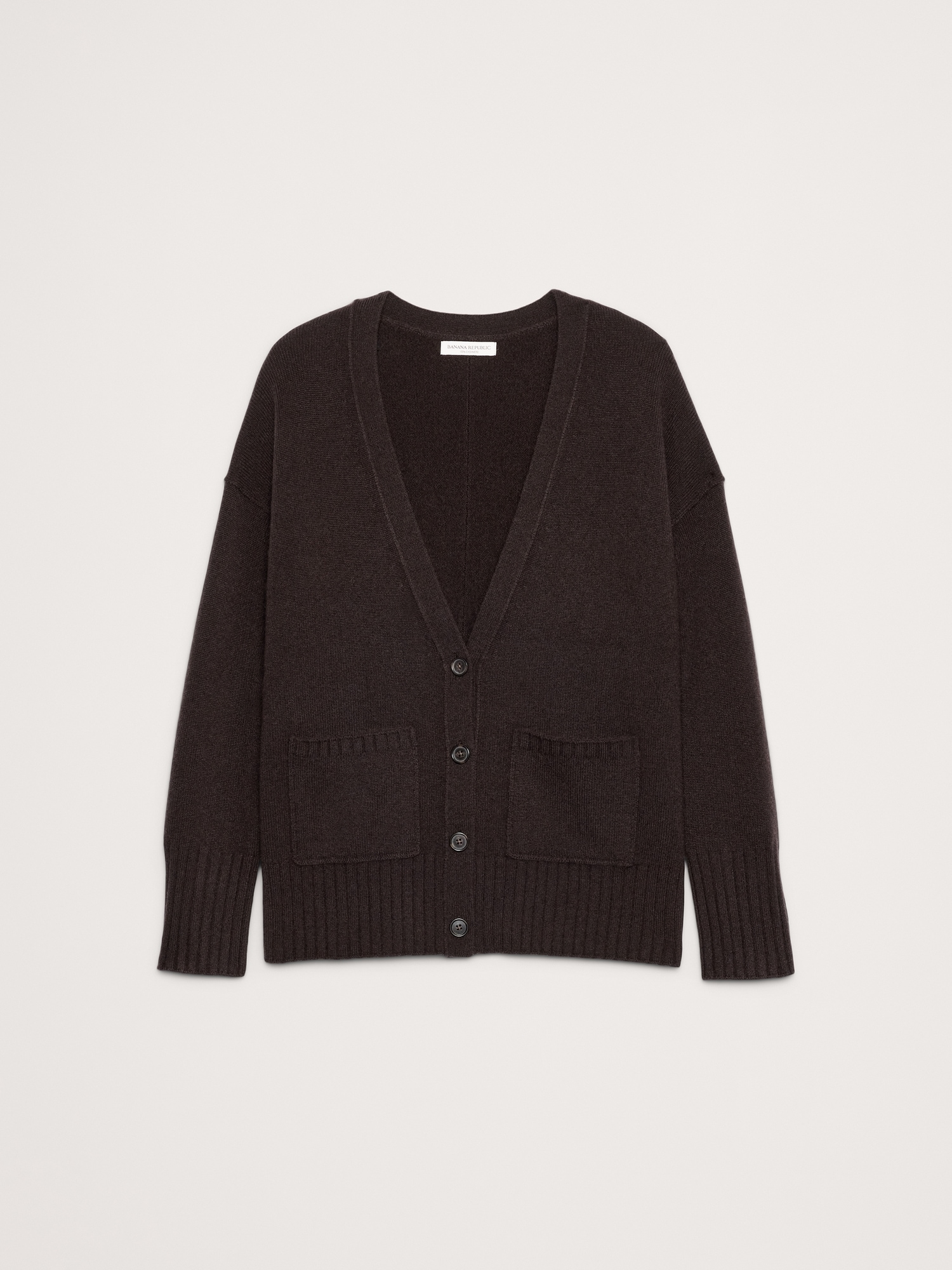 The vibe here is relaxed, yet put-together. We cut this boyfriend cardigan with extra room, adding pockets and exposed seam details for a fresh twist. To make it luxe, we selected our signature midweight cashmere yarn so it’s ideal in cooler seasons.
