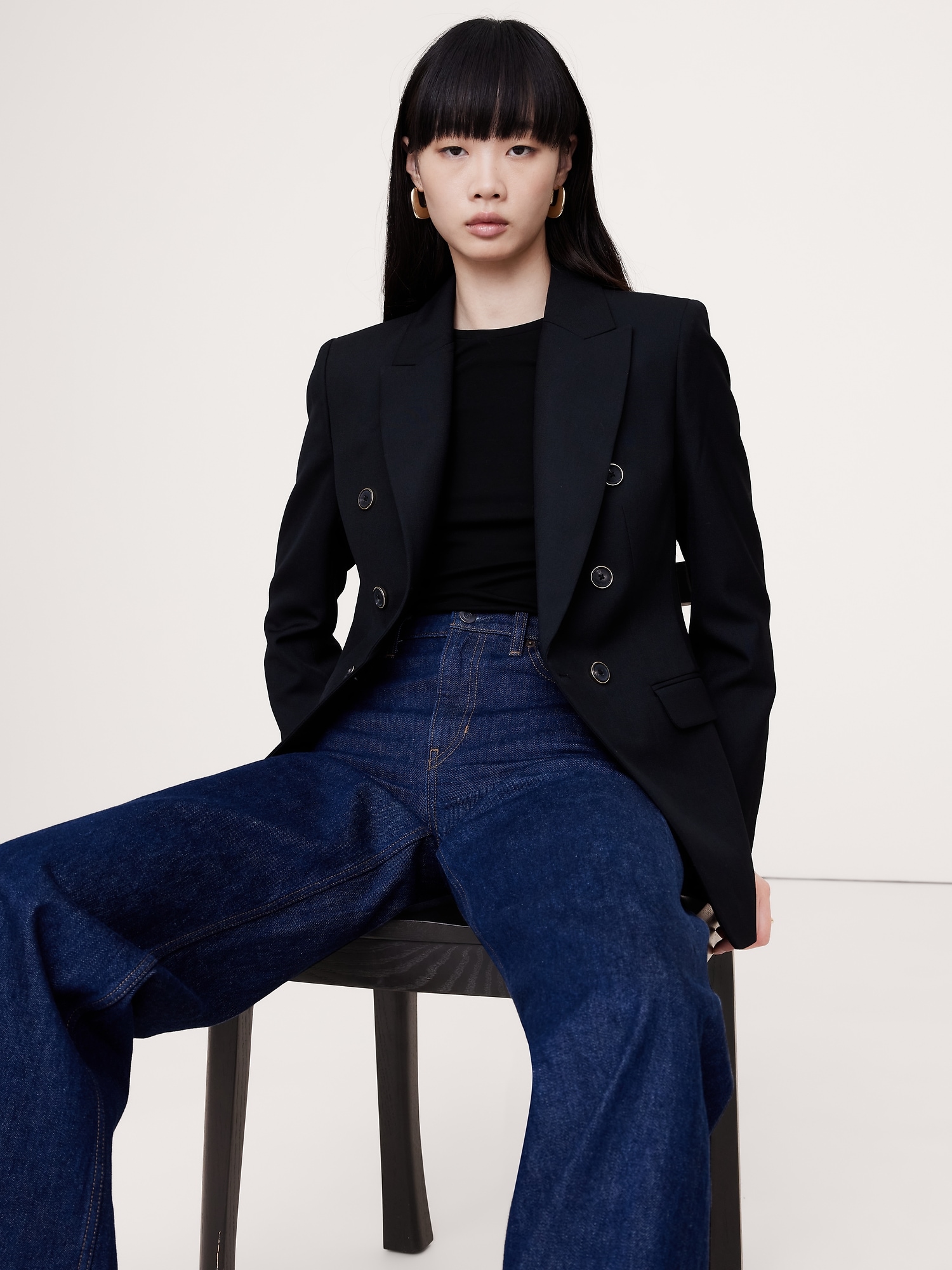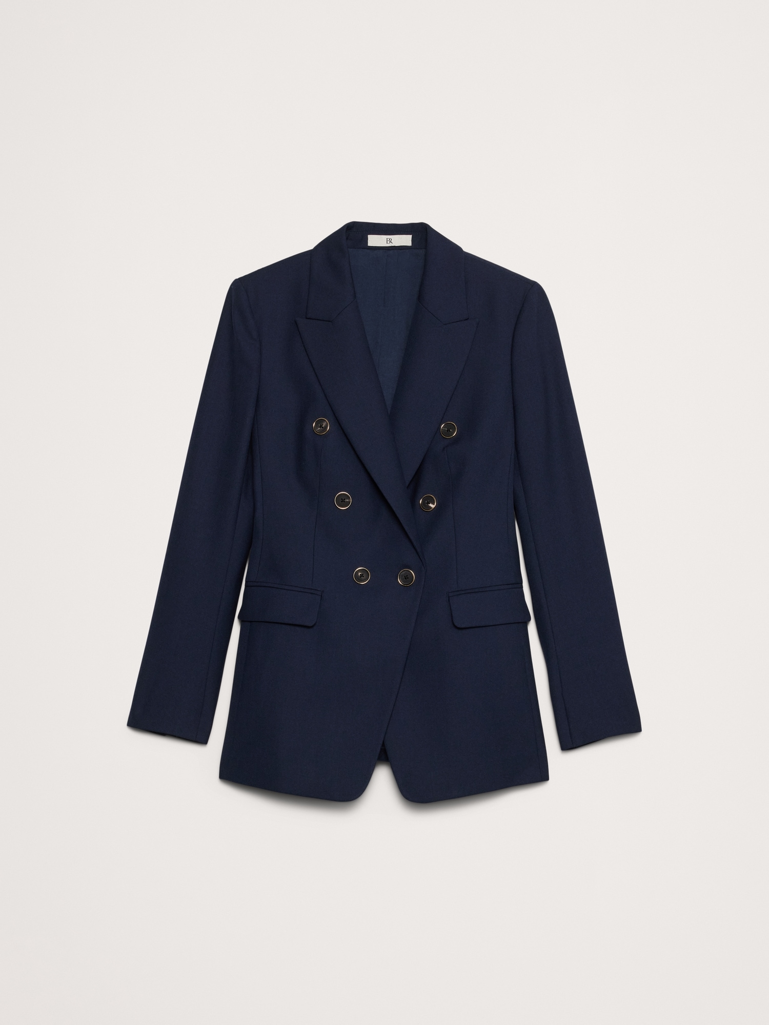 Expertly tailored from a beautiful wool-blend twill, this double-breasted blazer is cut for a slim fit with sharp shoulders. Here, we refreshed the style with horn buttons with a delicate gold frame—a nod to the style’s maritime heritage.