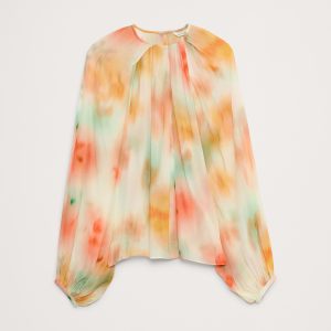 Designed with an easy fit that’s relaxed from the shoulders to the hem, this blouse has a shorter length paired with feminine, balloon sleeves and a chiffon construction. We love the twisted detail at the neck.