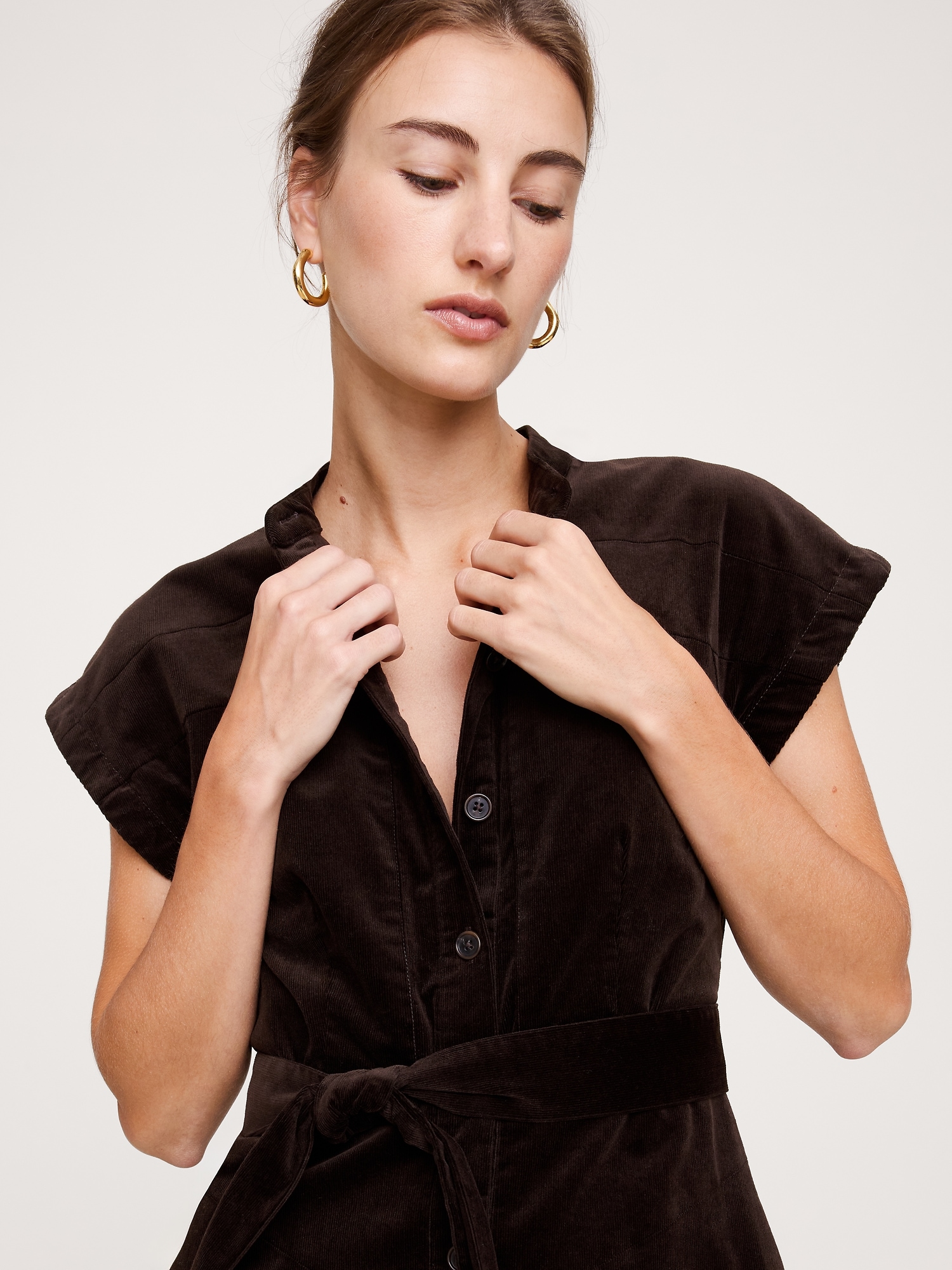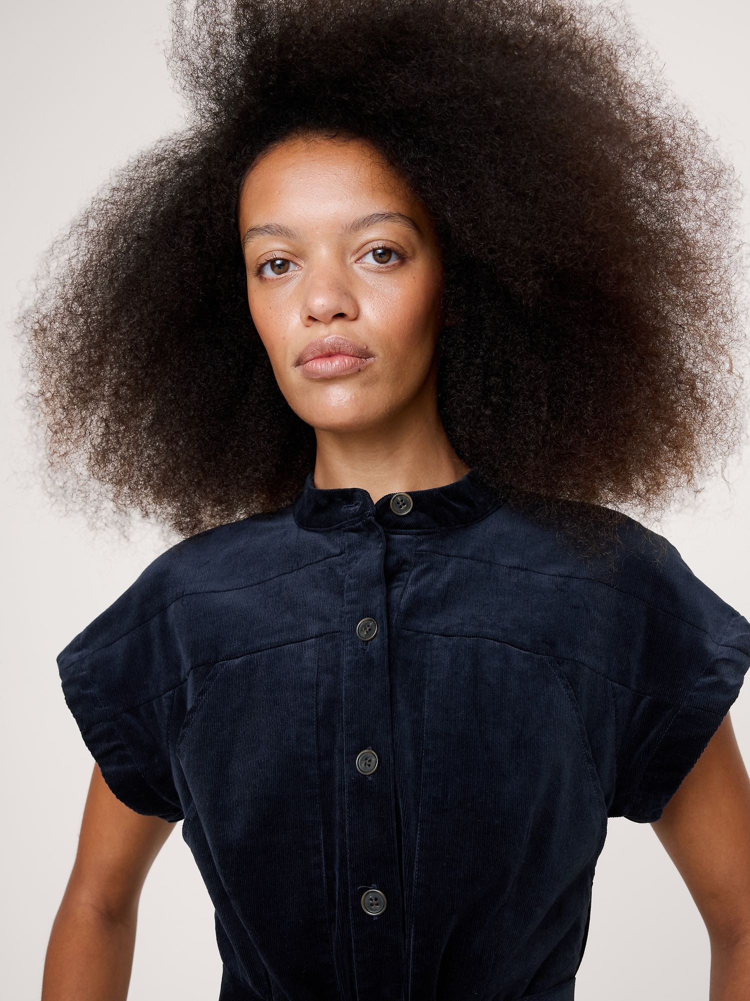 When it comes to a good shirt dress, no one does it quite like us. Here, we kept the silhouette clean with a banded collar—the better to show off this soft, fine-wale corduroy.
