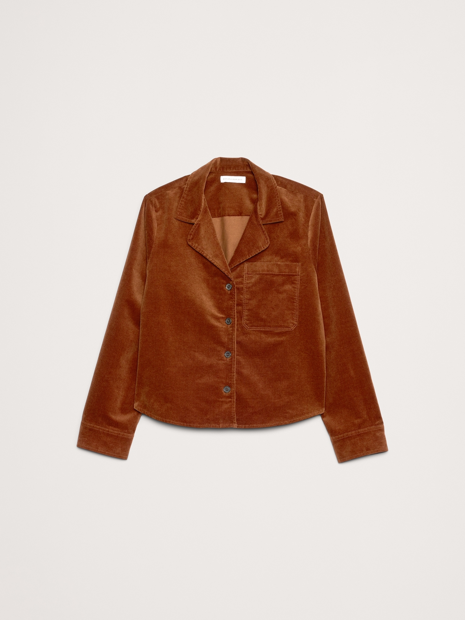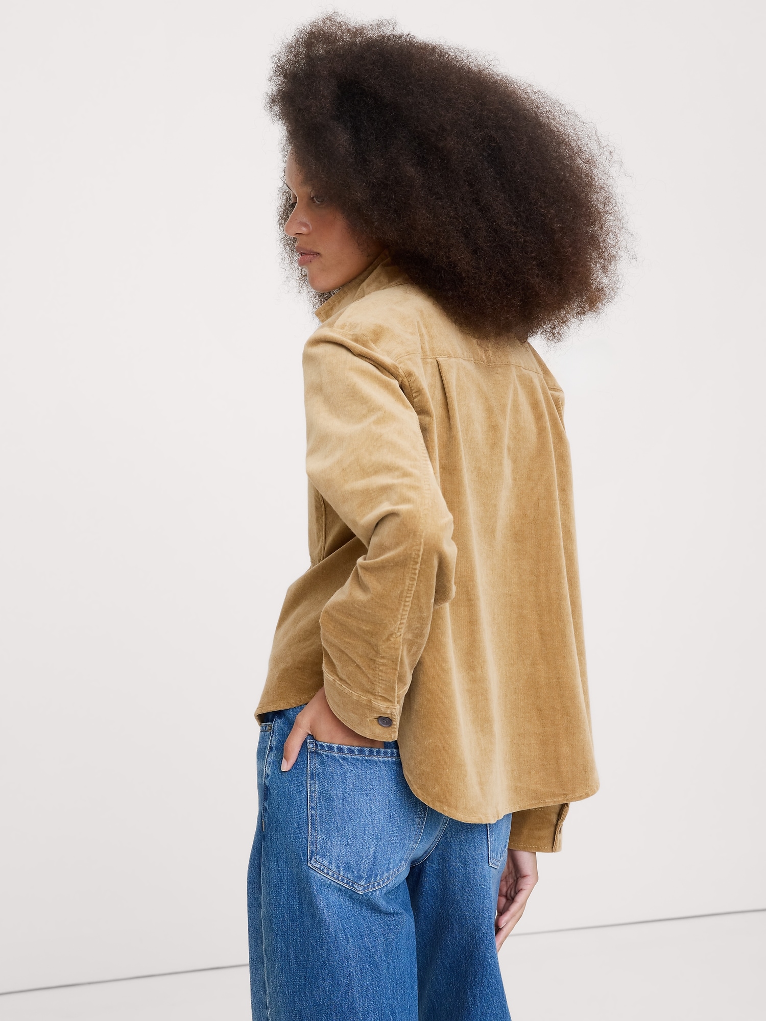 Nothing says cold weather quite like corduroy. Here, we put it to use in a shirt jacket with slightly shrunken proportions so it’s easy to layer all year.