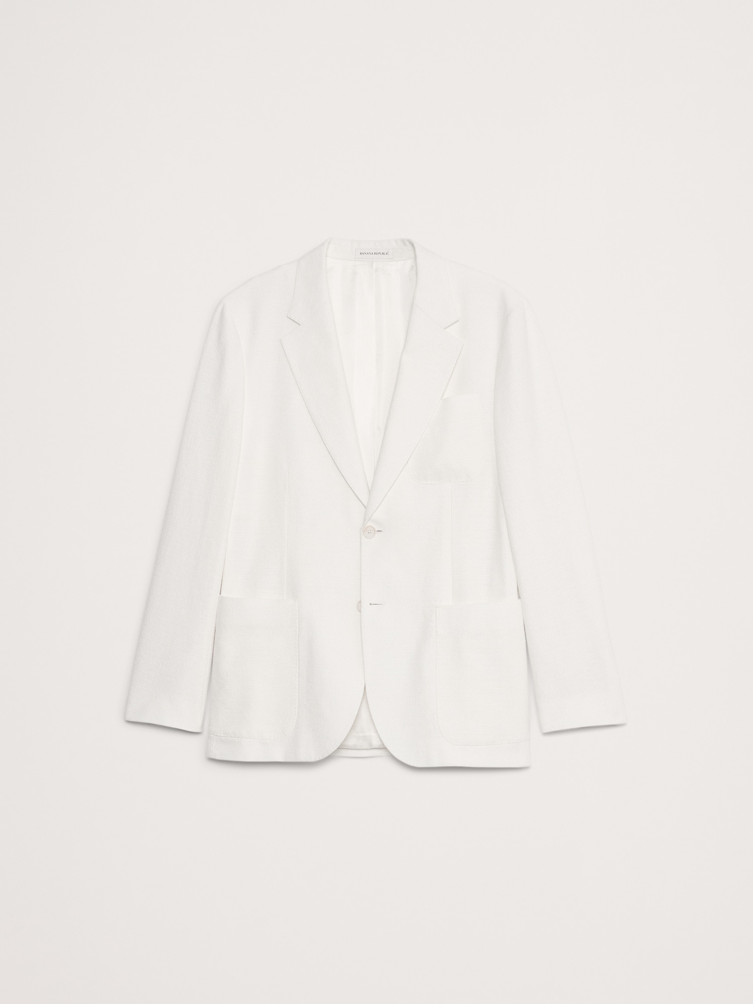 Designed with warm climates in mind, this suit jacket is cut from a blend of linen, cotton, and viscose—seen here in a soft white. Wear it with the matching suit pant—hello, wedding season.