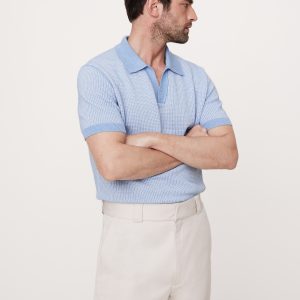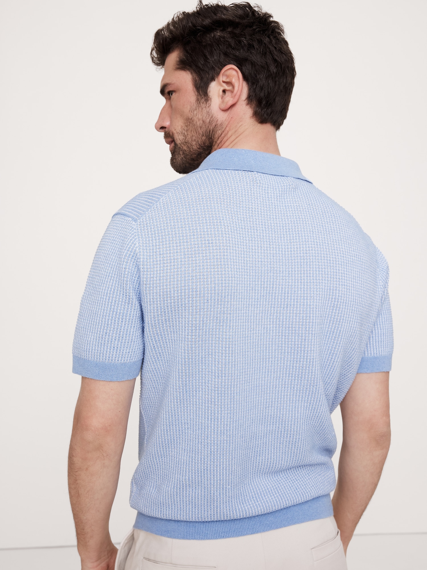 Cotton-Linen Johnny-Collar Sweater Polo