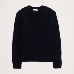 A utilitarian twist on the classic waffle-knit sweater, this one is knitted in soft cotton and warm Merino wool with patch details at the shoulders and arms.