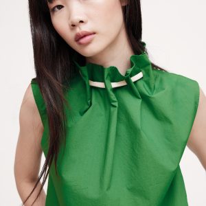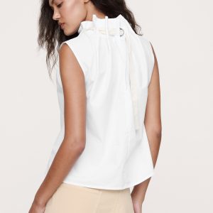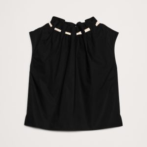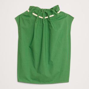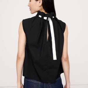 Cotton Poplin Cinch-Neck Top