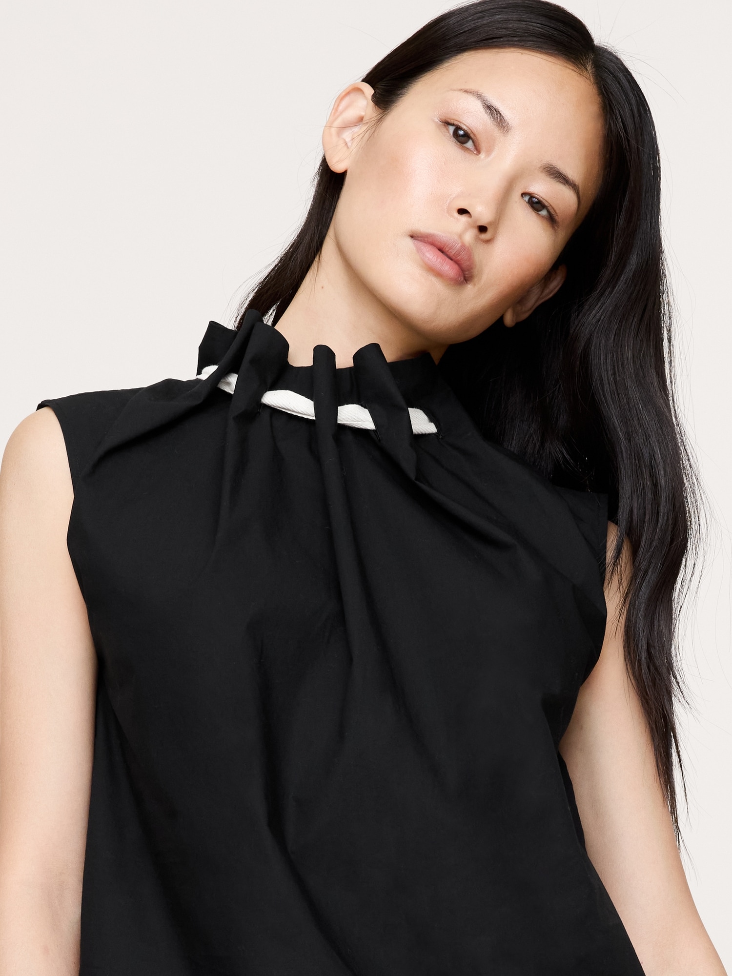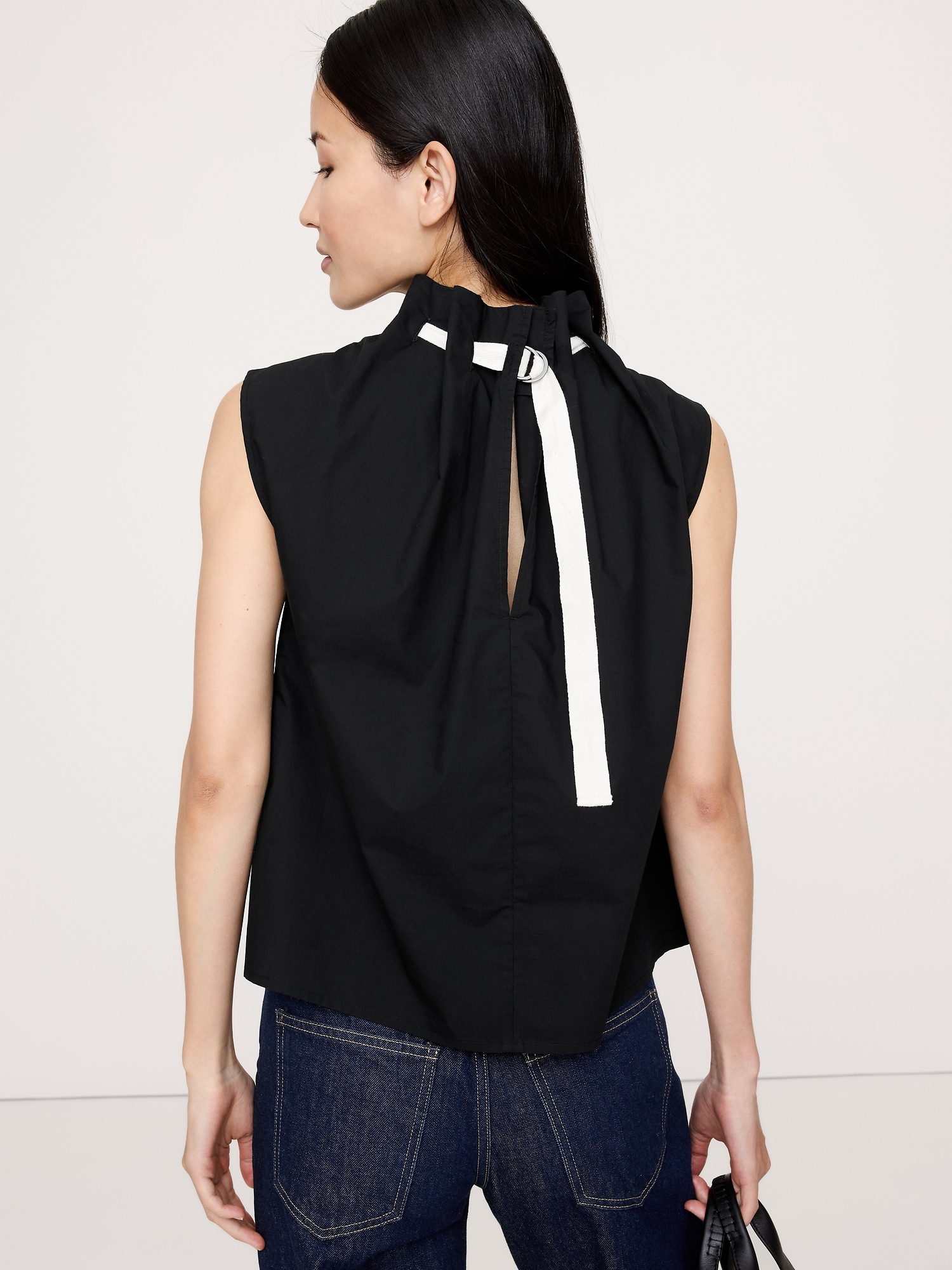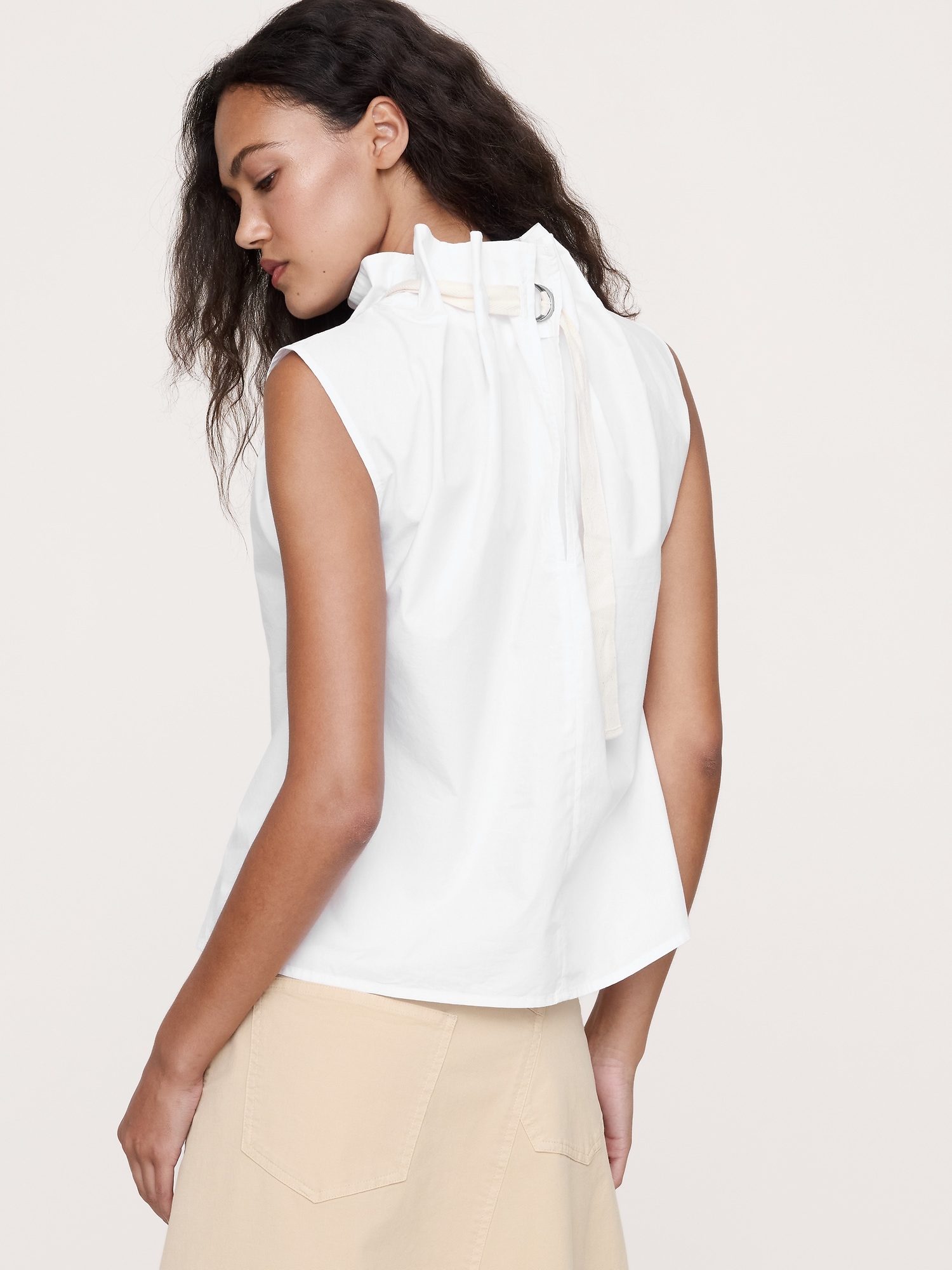 We love poplin because it transcends trends. Here, a cinch-neck top with drawstring detail in premium 100% cotton poplin.
