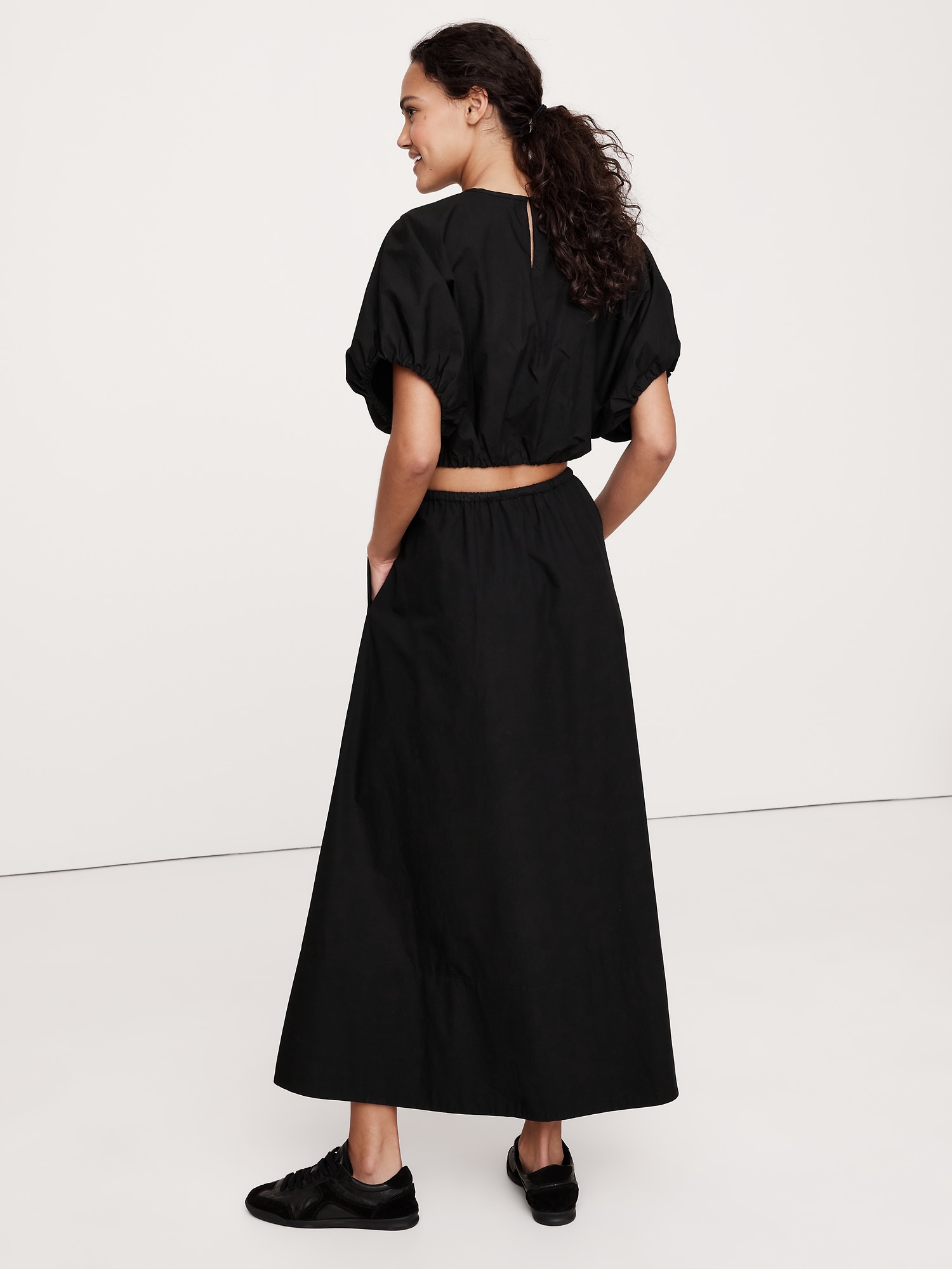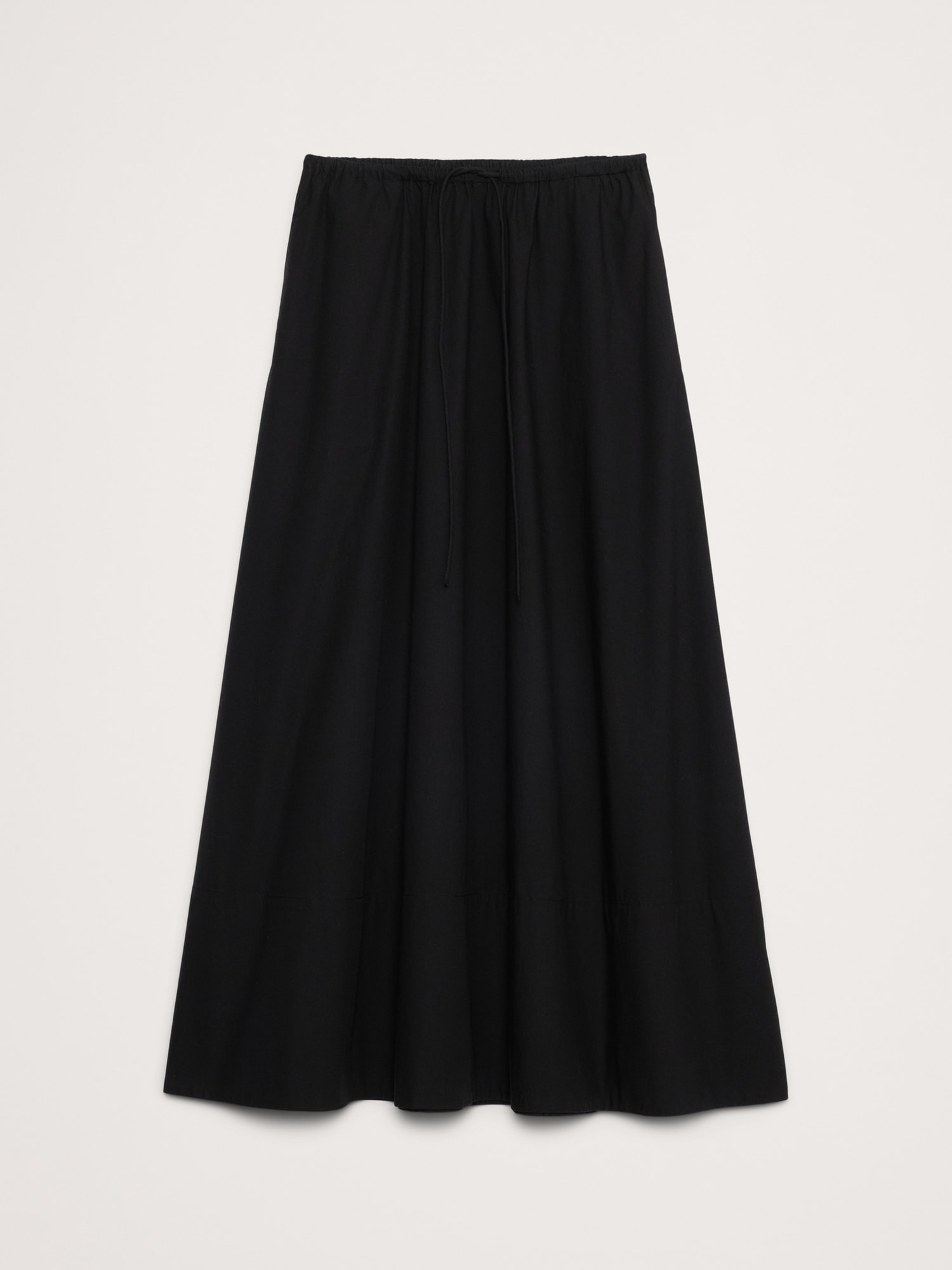 A timeless A-line maxi skirt in premium 100% cotton poplin with an extra-wide hem. Pair it with the matching bubble-hem cropped top to make it a set.
