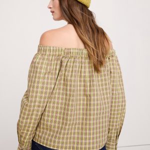 We reimagined the classic button-down shirt in an off-the-shoulder silhouette—in our premium 100% cotton poplin.