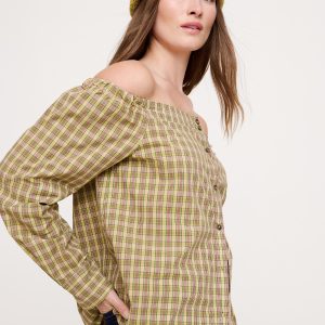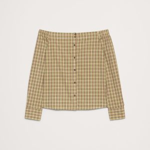 We reimagined the classic button-down shirt in an off-the-shoulder silhouette—in our premium 100% cotton poplin. Classic Fit: A straight and easy fit. Off-shoulder neckline. Button front. Unlined. #825956