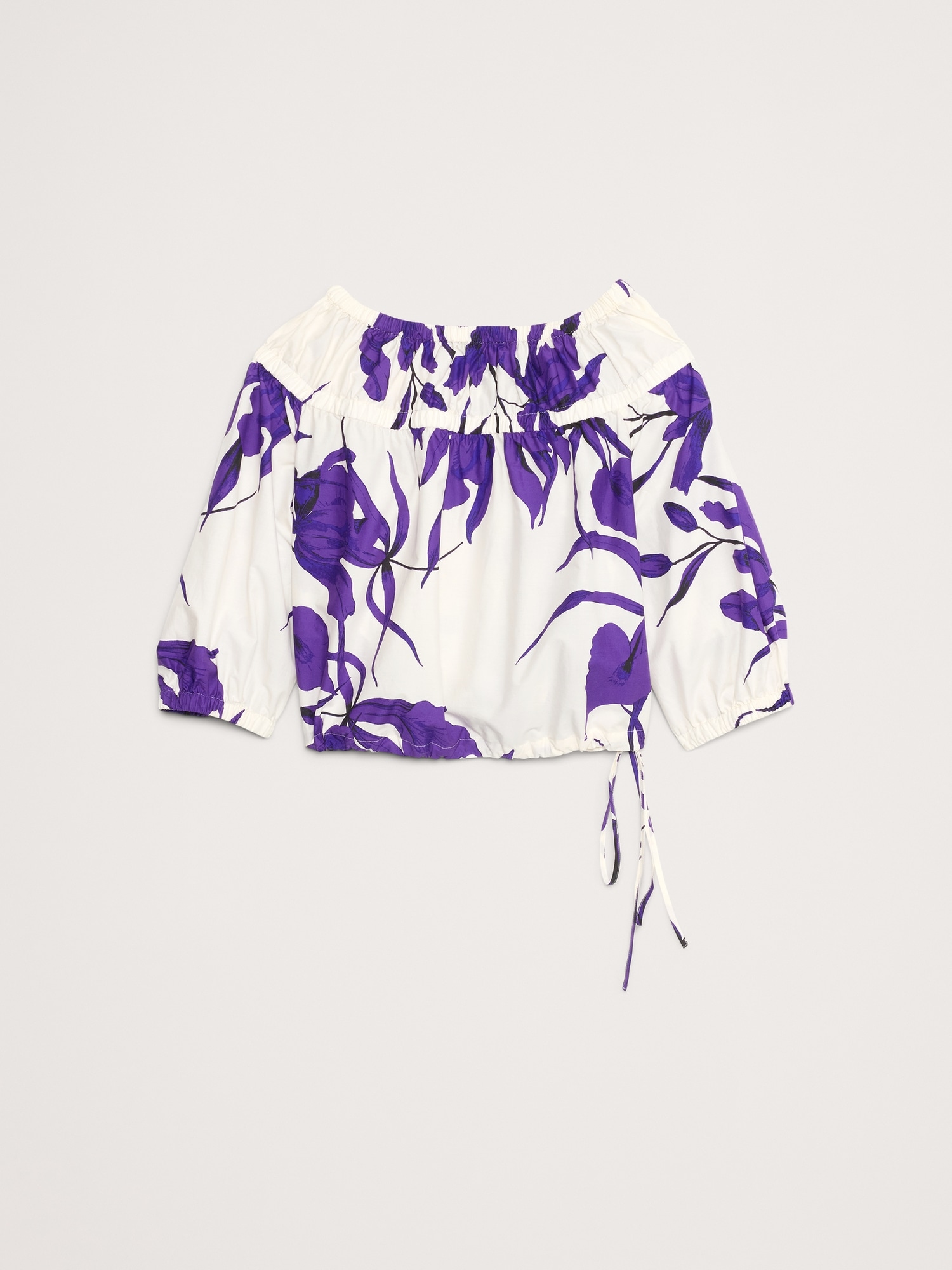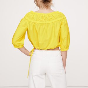 It’s these easy cotton poplin shirts we’re loving right now. We designed this one with a cropped hem and drawstring detail to create a bubble hem.