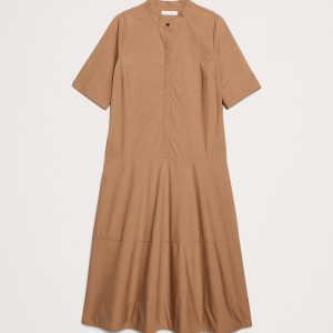 Cotton Poplin Tuxedo-Front Midi Dress