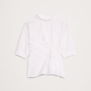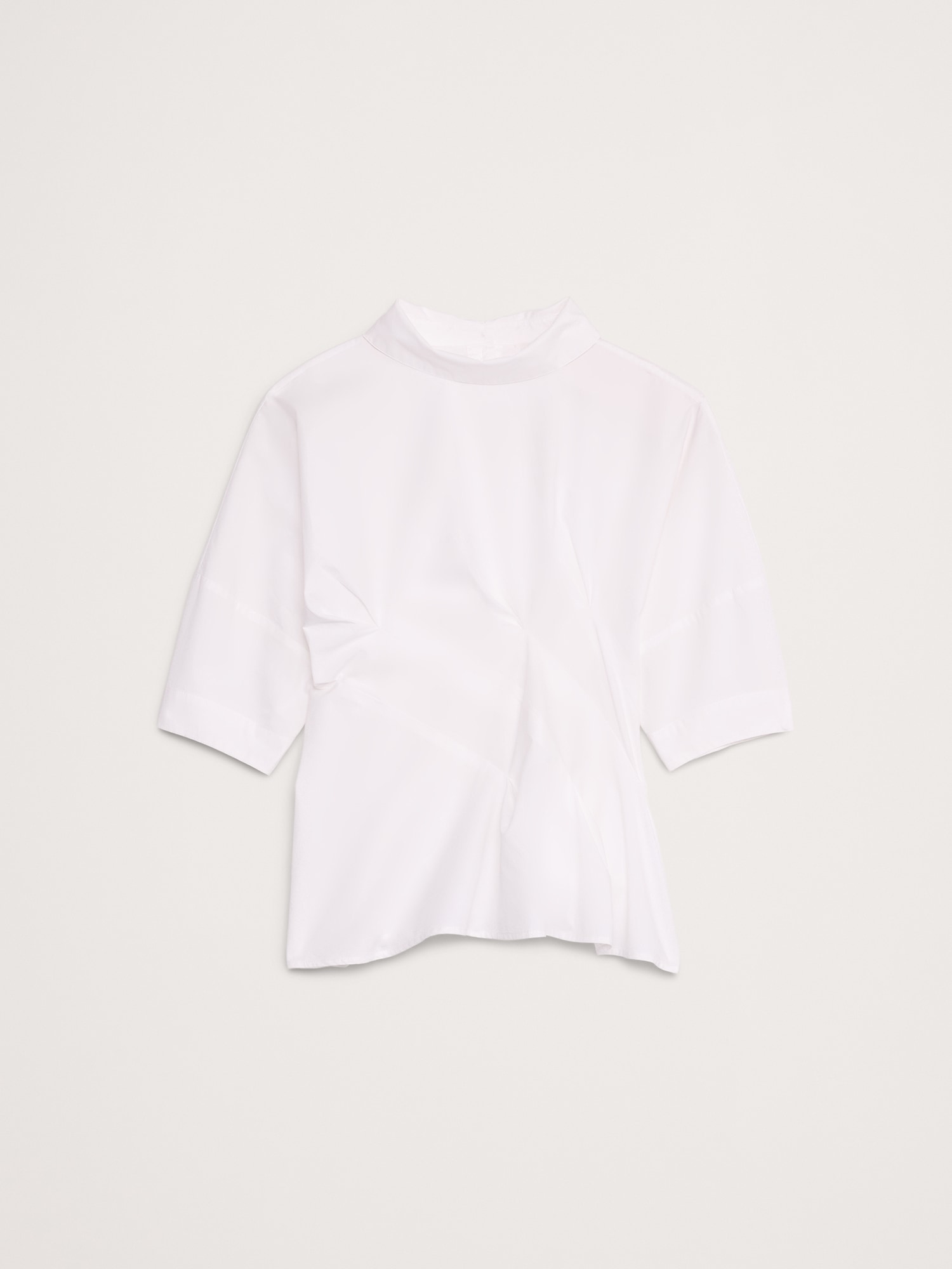 Deconstructed, reconstructed. This cotton poplin top nods at the season’s twisted shirting trend with rear button placket and pleats that wrap around the waist.