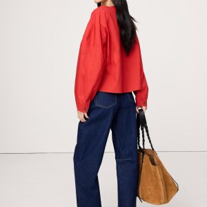 Cotton Poplin Volume-Sleeve Top