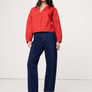 Button this cotton poplin top all the way up or leave it slightly open and style it off the shoulder for an at-ease effect.