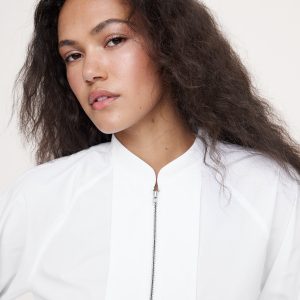 Cotton Poplin Zip Popover Top