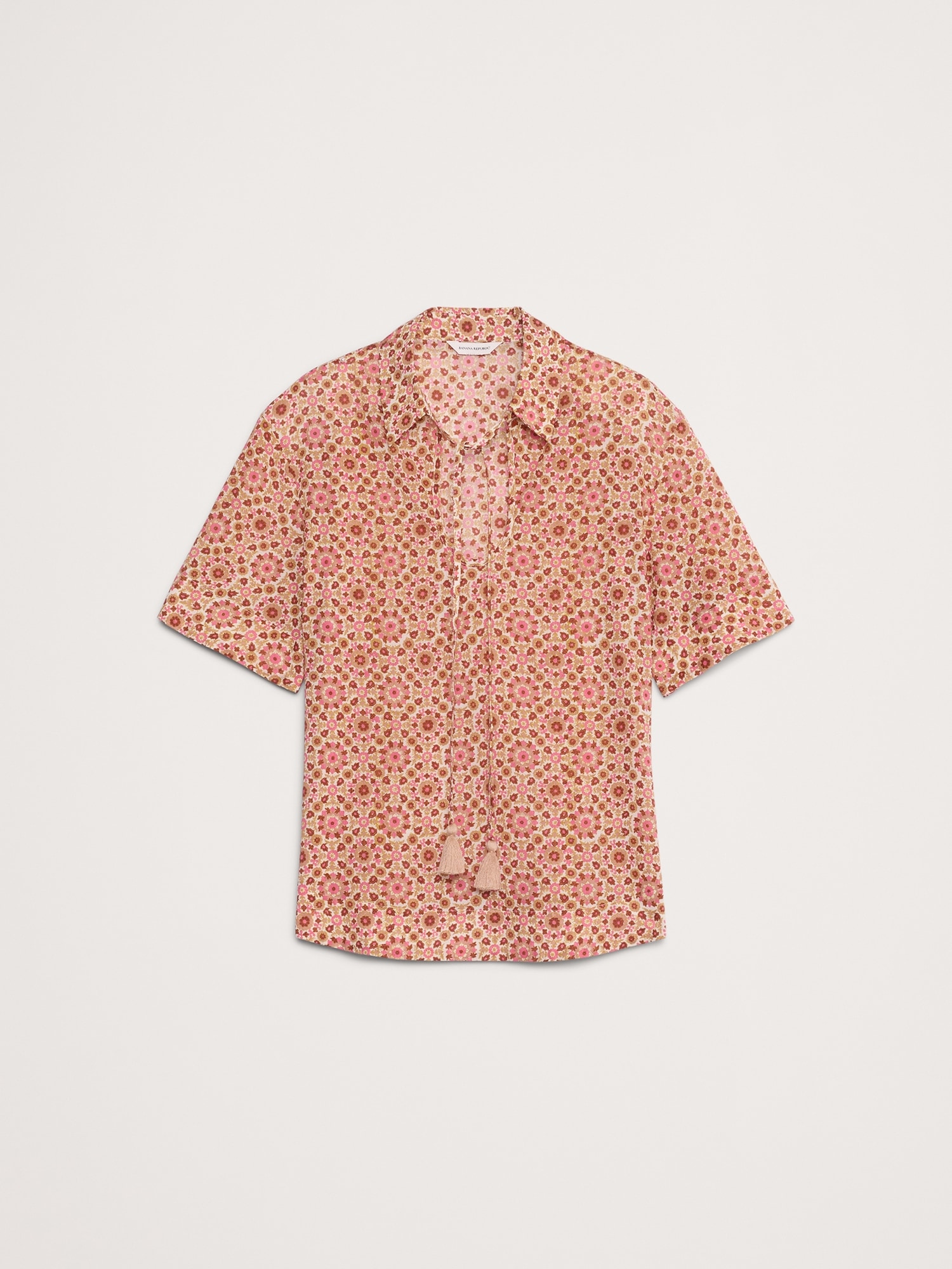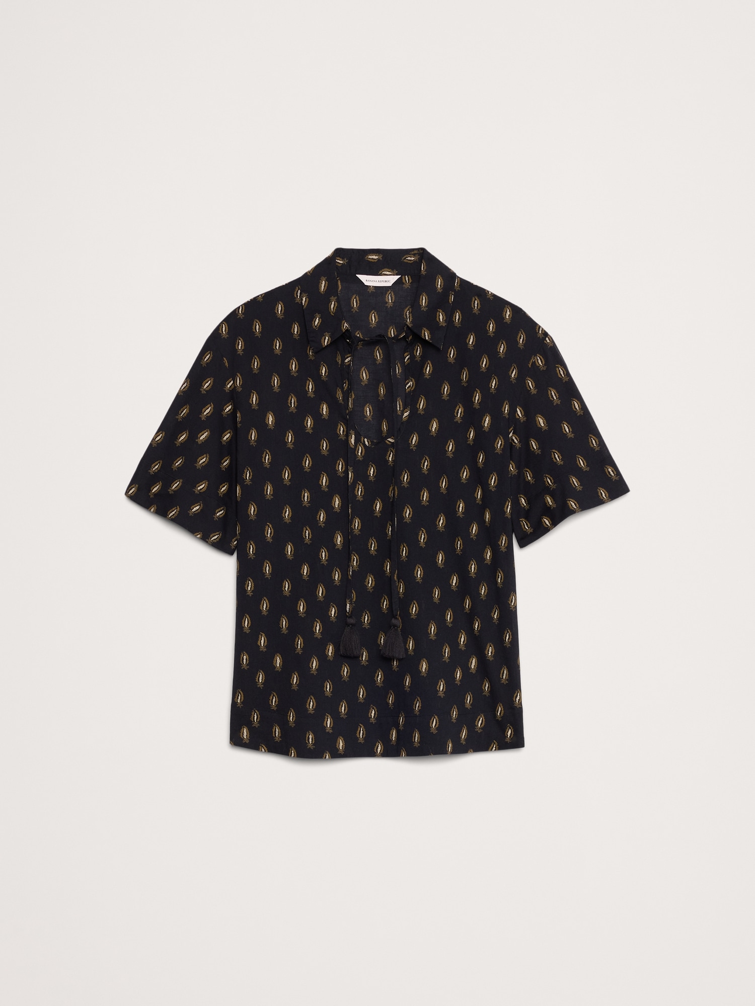 An easy top with a twist. We added a keyhole cutout and a tassel tie to the neckline of this popover shirt, in our lightweight cotton lawn. Relaxed fit: Relaxed fit through shoulders, chest and waist. Point collar with keyhole cutout and tassel tie. Straight hem. Unlined. #826032