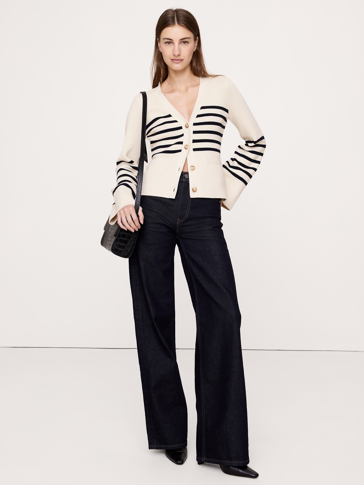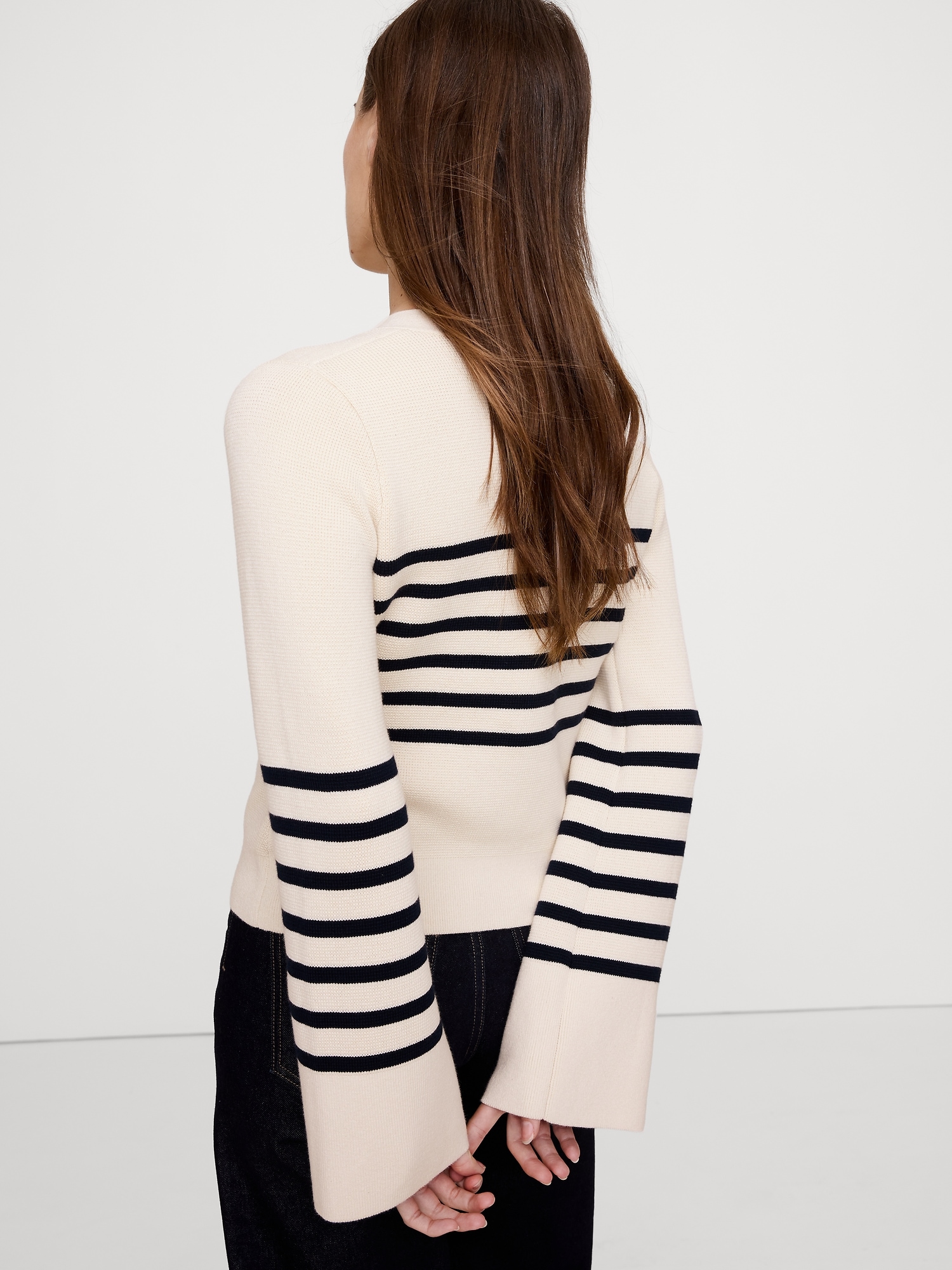 We’ve updated our cotton-silk cardigan with an on-trend flared sleeve and above-hip length so you can layer it or wear on its own.