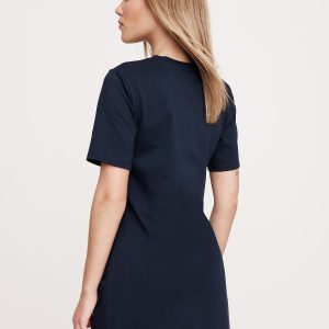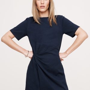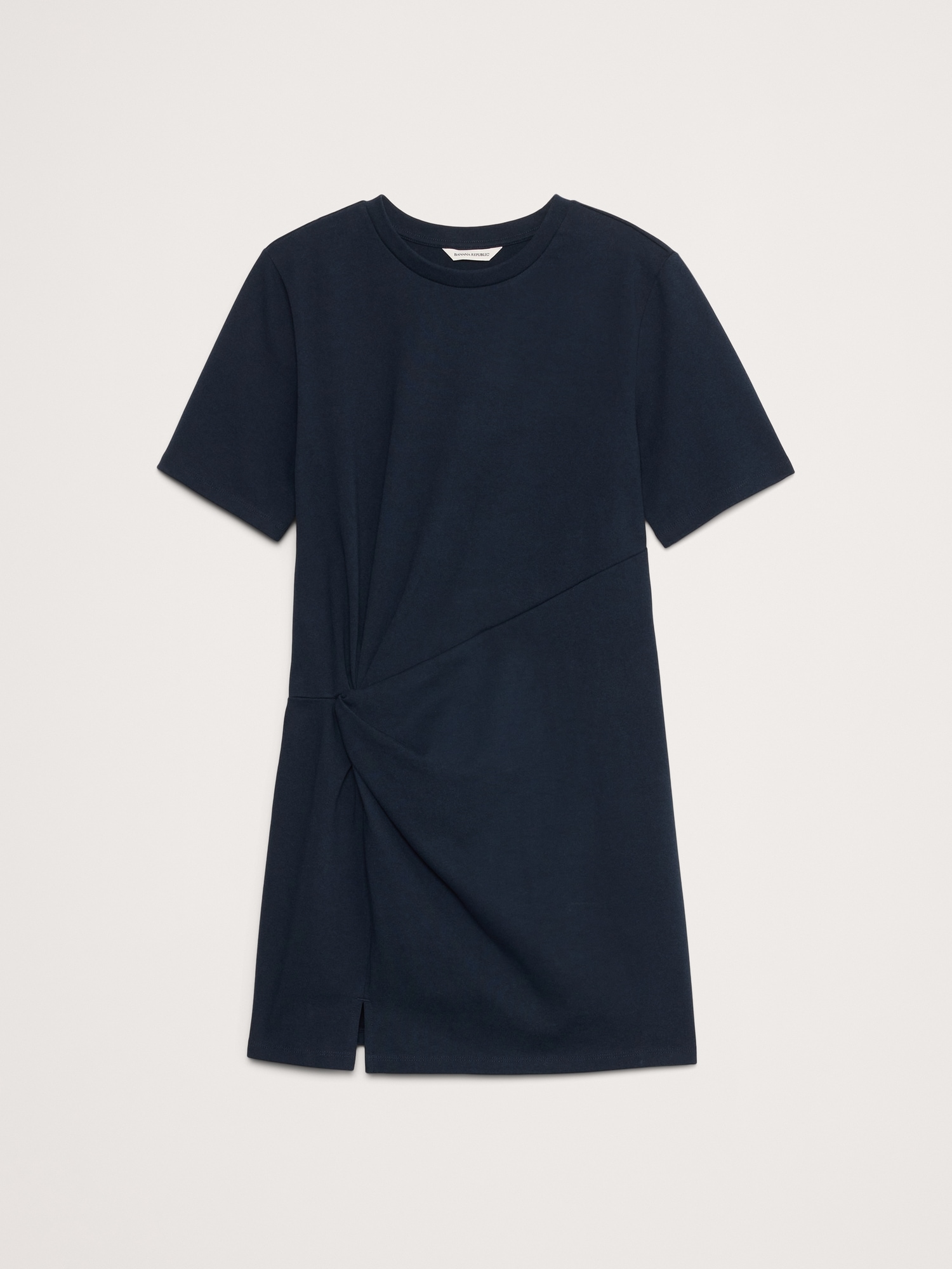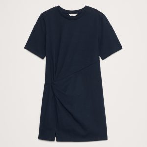 We can’t get enough of this t-shirt dress. Cut from a softly structured 100% cotton knit, we added a twist detail at the hip and subtle slit at the hem.