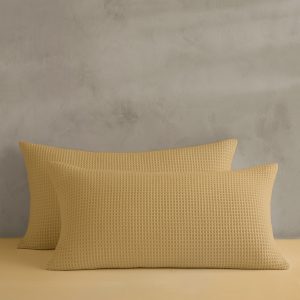 Luxurious cotton, soft and snuggly, is textured with raised ridges that are expertly woven for beautiful, honeycomb dimension in this exquisite waffle-weave set of shams.