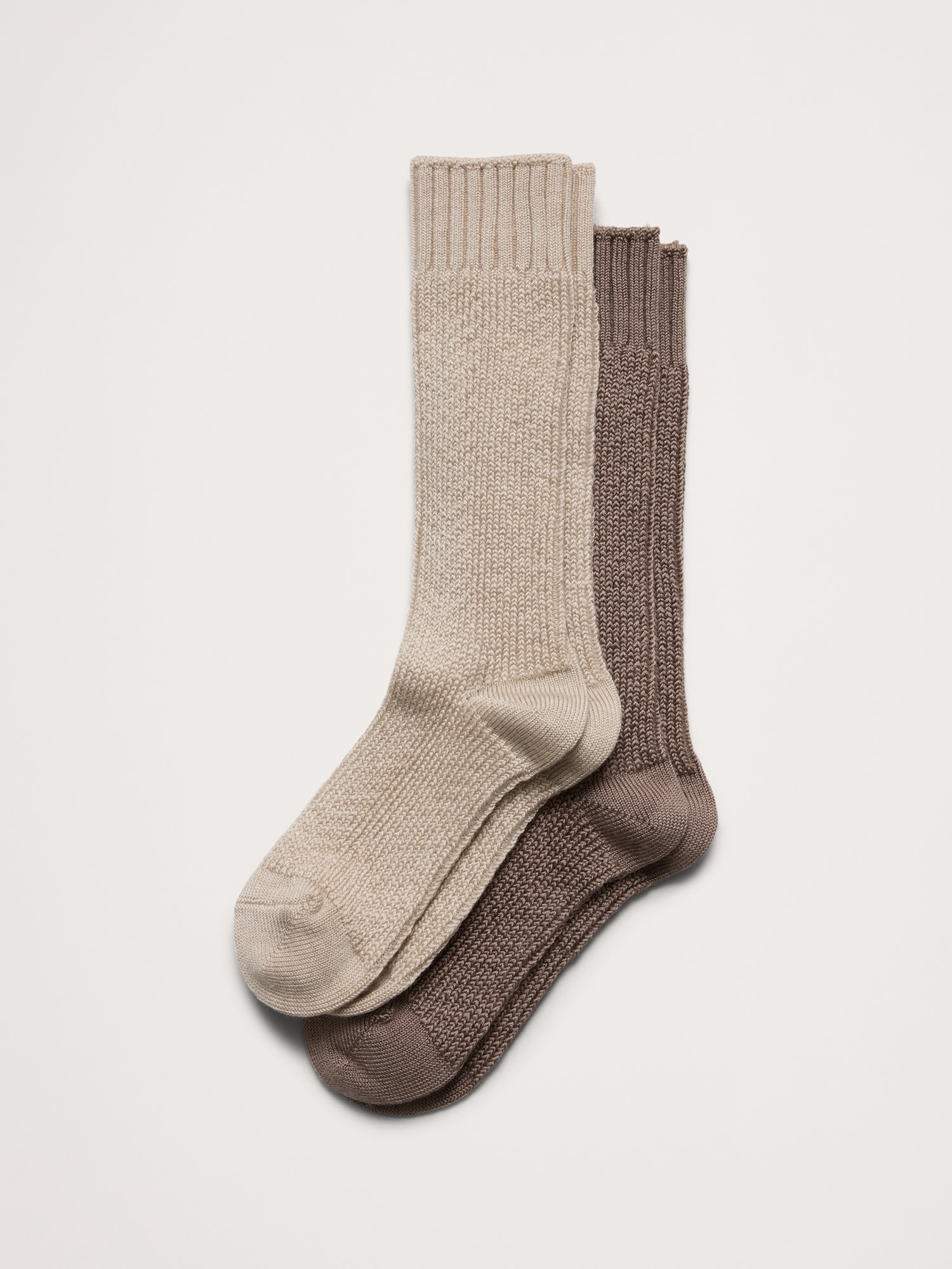 A cozy sock made from a special, blended yarn with Merino wool for warmth and softness.