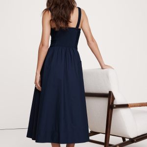 Our take on the season’s mixed-media dresses, in a midi length. Crafted in a mix of a crochet-like knit bodice and a 100% cotton poplin skirt. Did we mention it also has pockets?