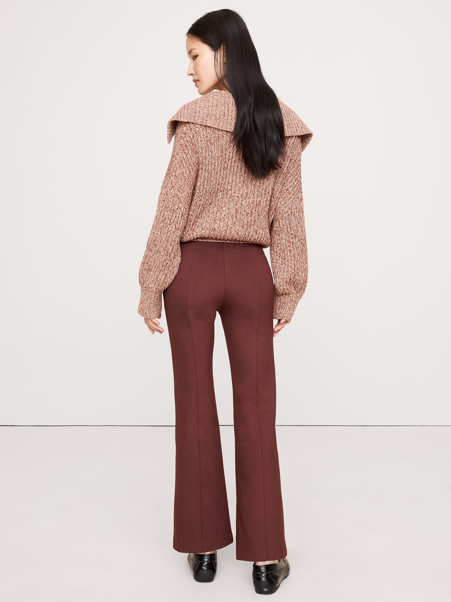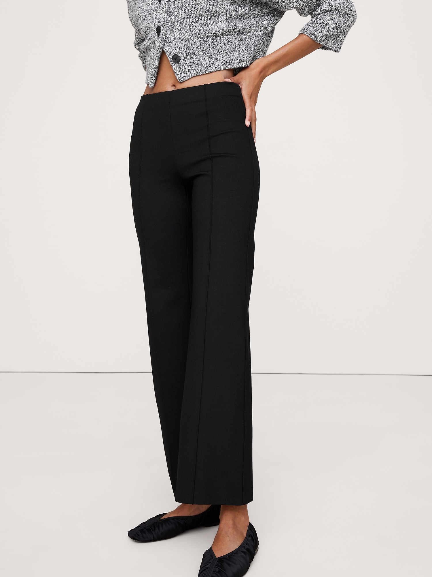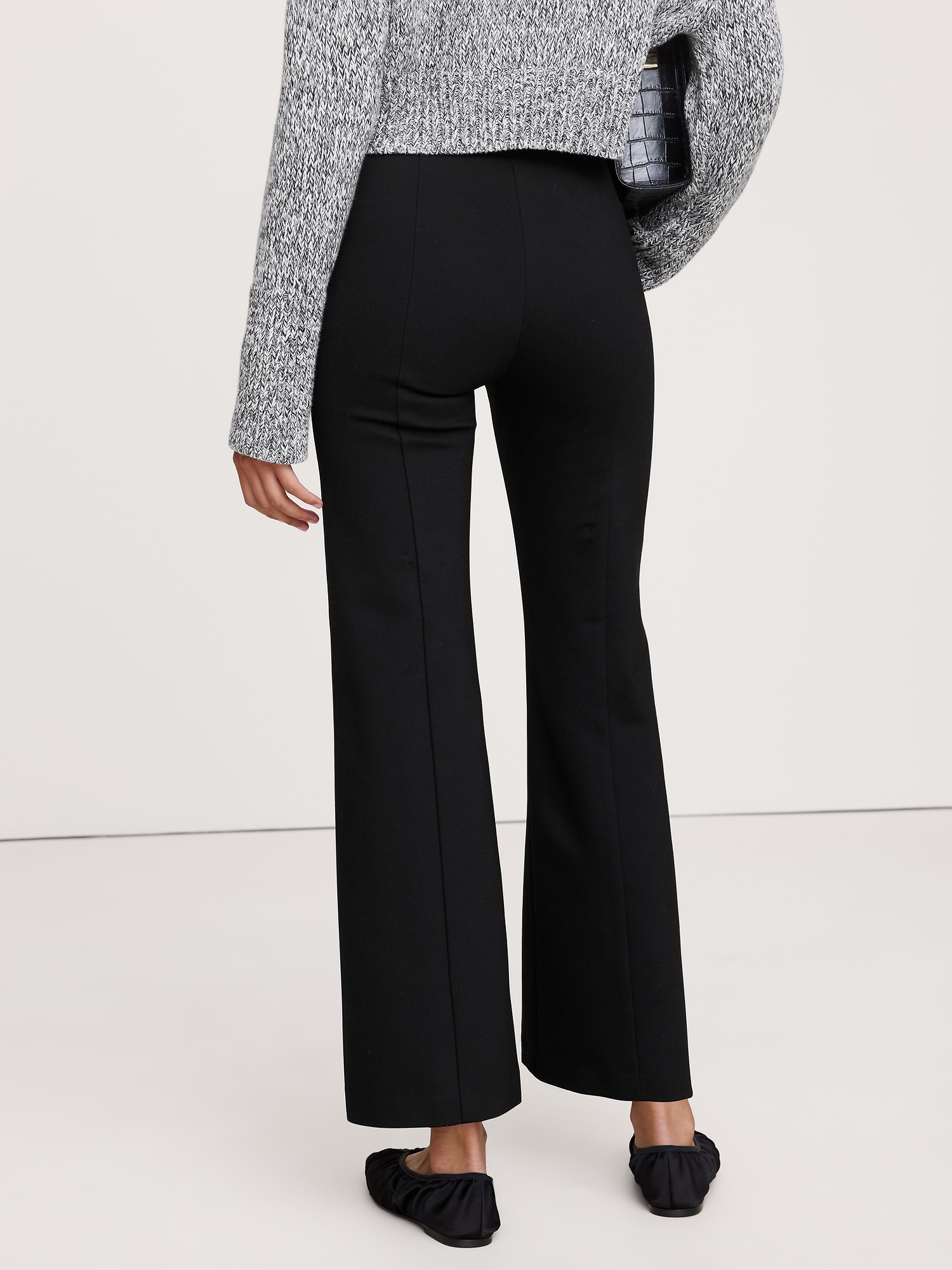 This kick-flare pant is cut from our Everywhere Ponte fabric—a favorite for its dressed-up look and high stretch for comfort. Plus, we added pintuck detailing, which adds a bit of structure and the look of a trouser crease.