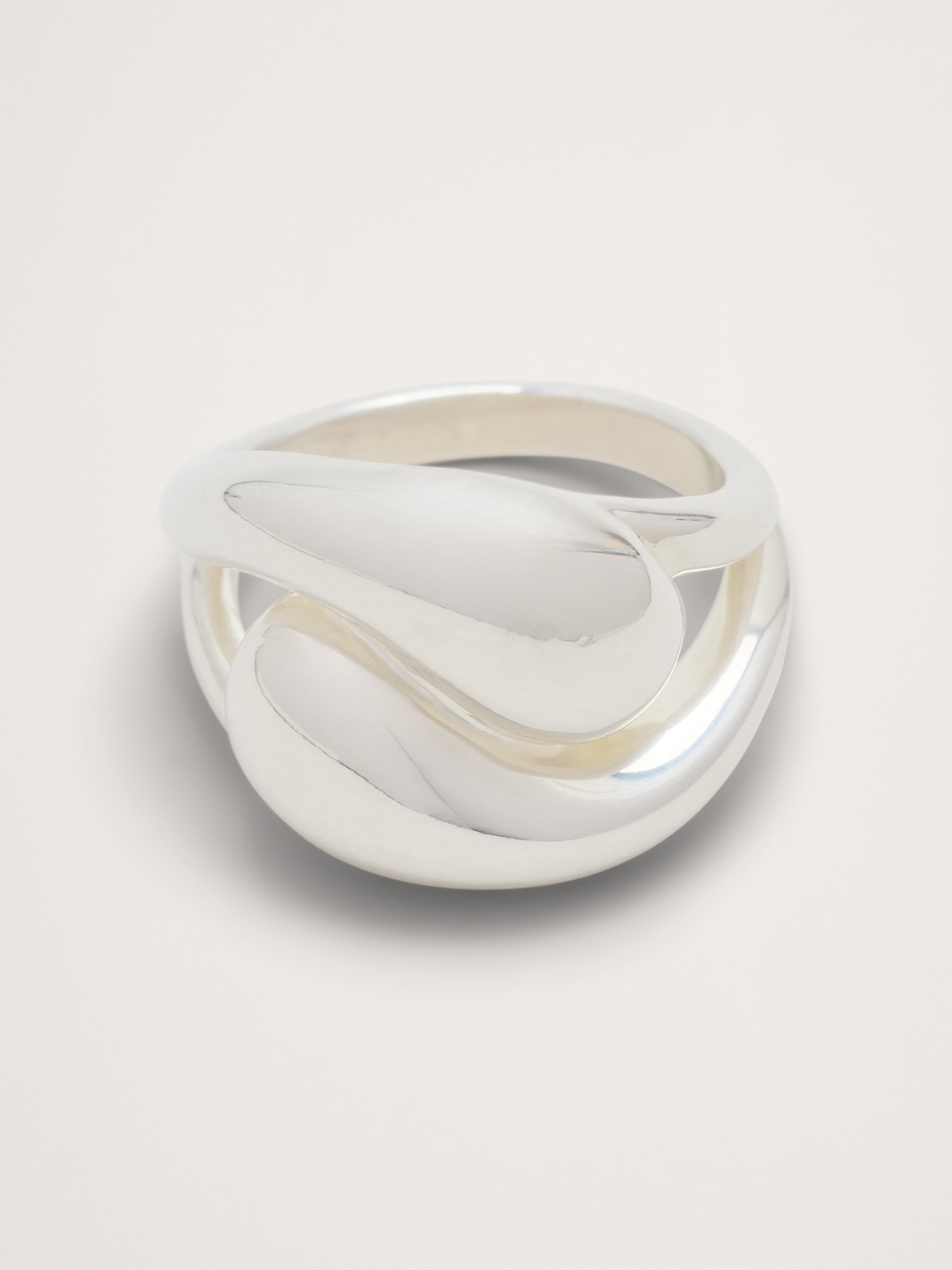 A minimalist statement of intertwined, undulating rings, in 14k-gold or 999-silver plated brass.
