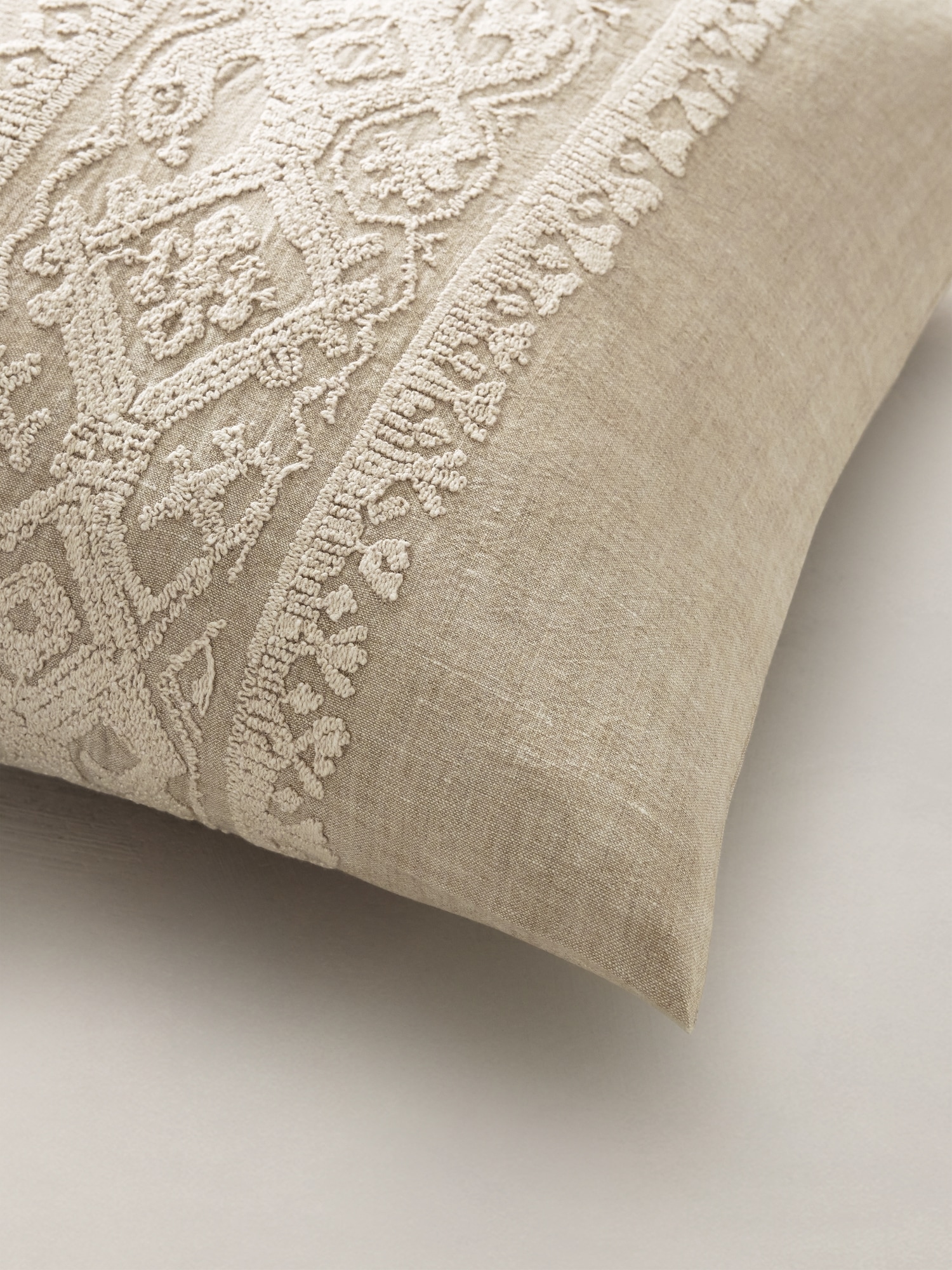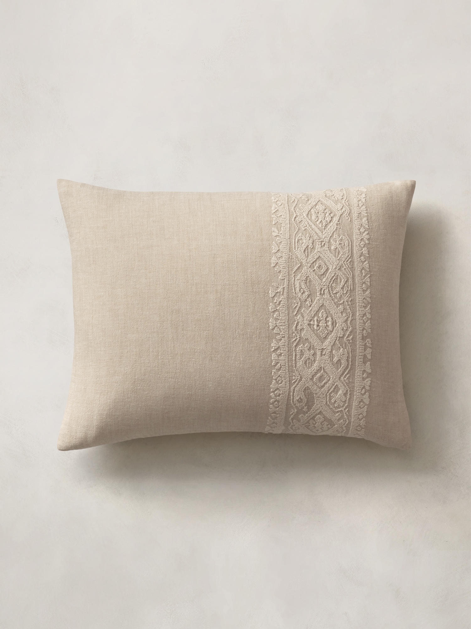 Inspired by artisanal Panchuli weaves from the Himalayan foothills, our shams are tailored with an embroidered band of botanical and geometric motifs. Cut from fine linen-cotton fabric that’s specially washed for a relaxed, yet crisp feel, its all-weather weight offers year-round comfort. Pairs with the coordinating duvet for a cohesive look.