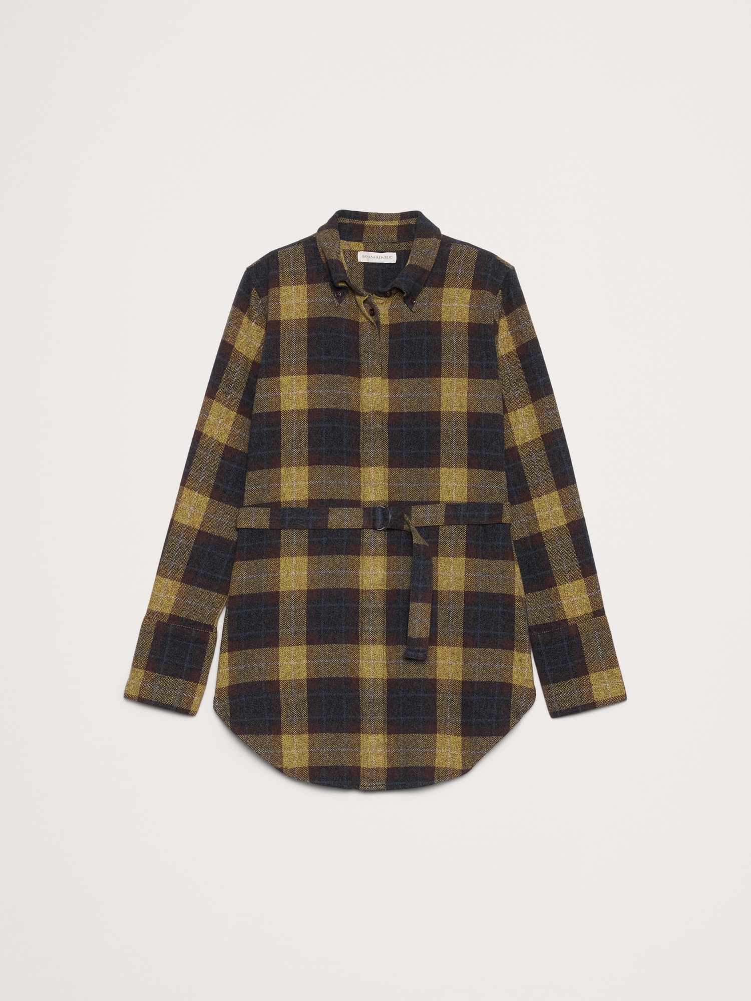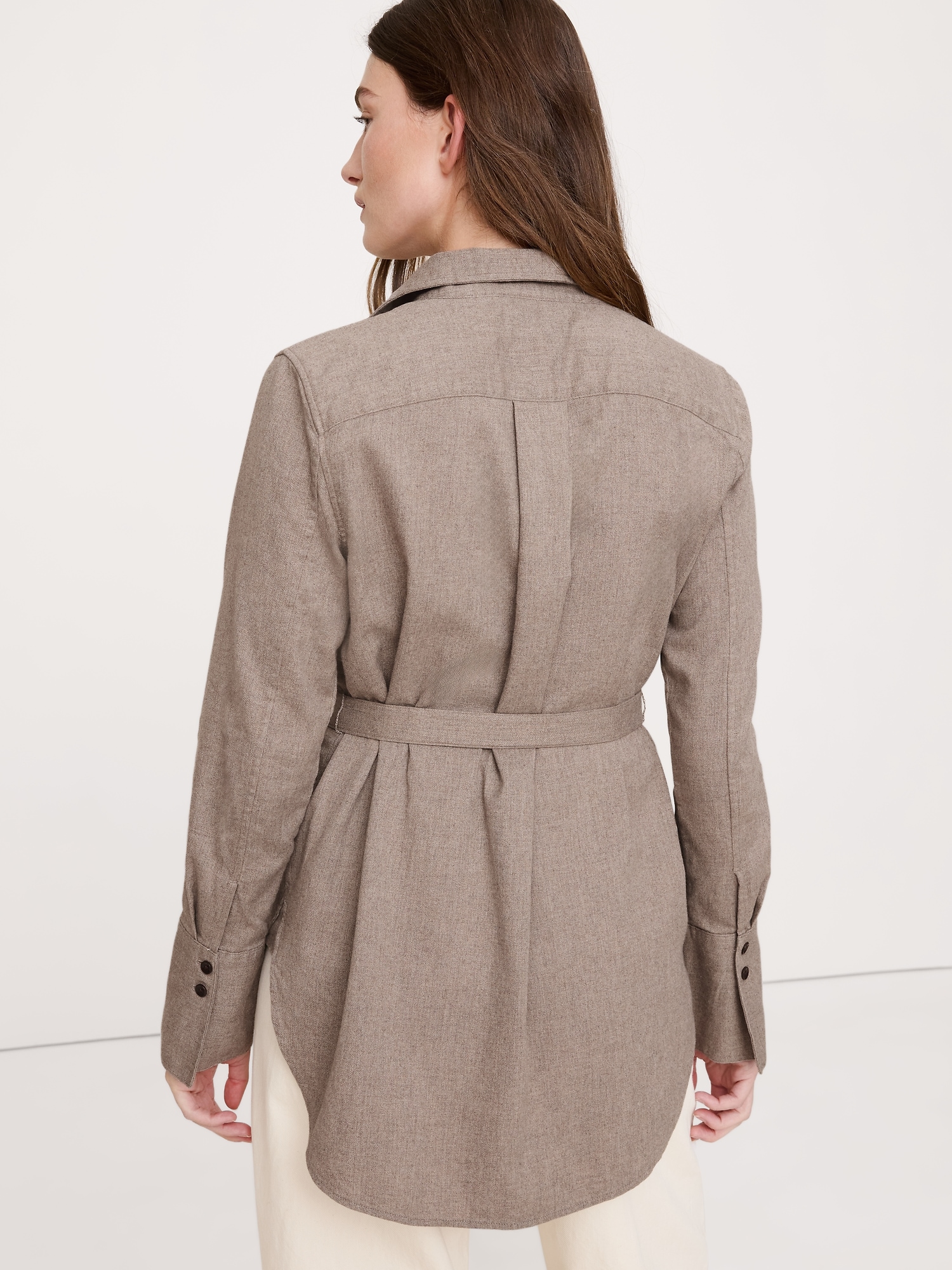 It’s these easy cotton shirts we’re loving right now. This one is tunic length and has an adjustable slider belt to define the waist, cut in our softest cotton flannel
