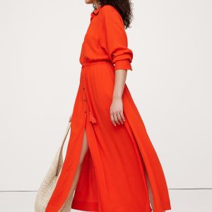 We kept the fit of this shirt dress easy, adding a tassel tie to help define the waist. Crafted in a lightweight fabric that’s ideal for summer.