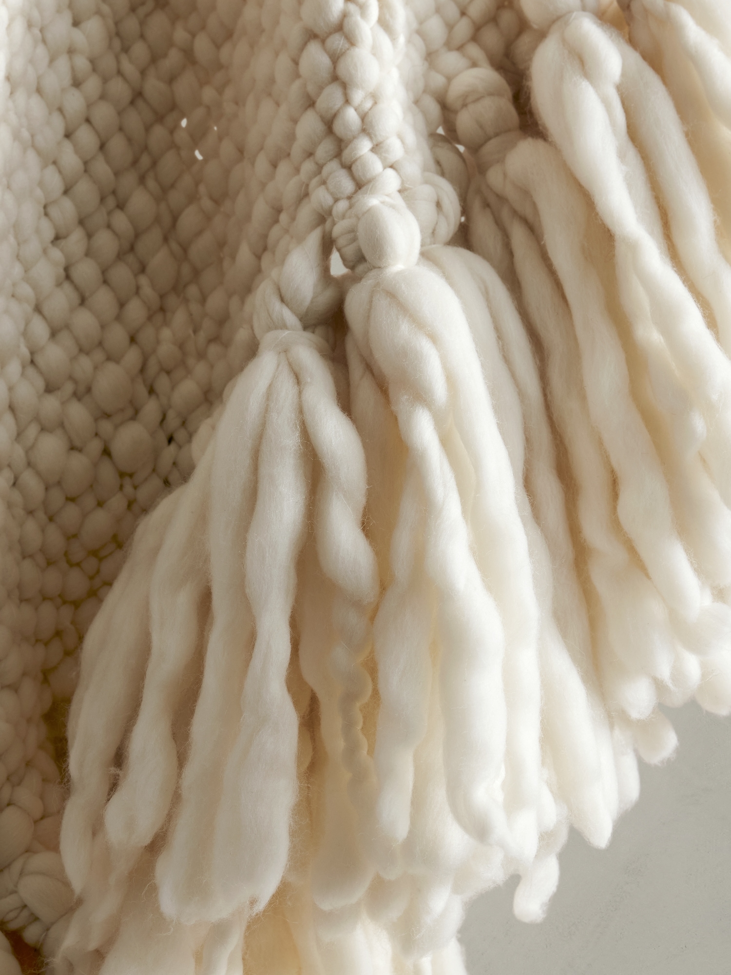 Look closely, this delightfully soft and warm throw blanket is crafted from a mix of undyed Merino wool. The fibers are carded, spun, and woven by hand to create spectacular and irregular dimension with long fringed ends, ensuring no two pieces are exactly alike. Why hand-carded? Increasingly uncommon, hand-carding wool—a specialized process akin to combing out fibers before they’re spun into yarn—produces a luxuriously irregular effect that reveals the natural beauty of this Merino wool as well as the expert hand of its maker, something which we celebrate. Handmade in India. #618914