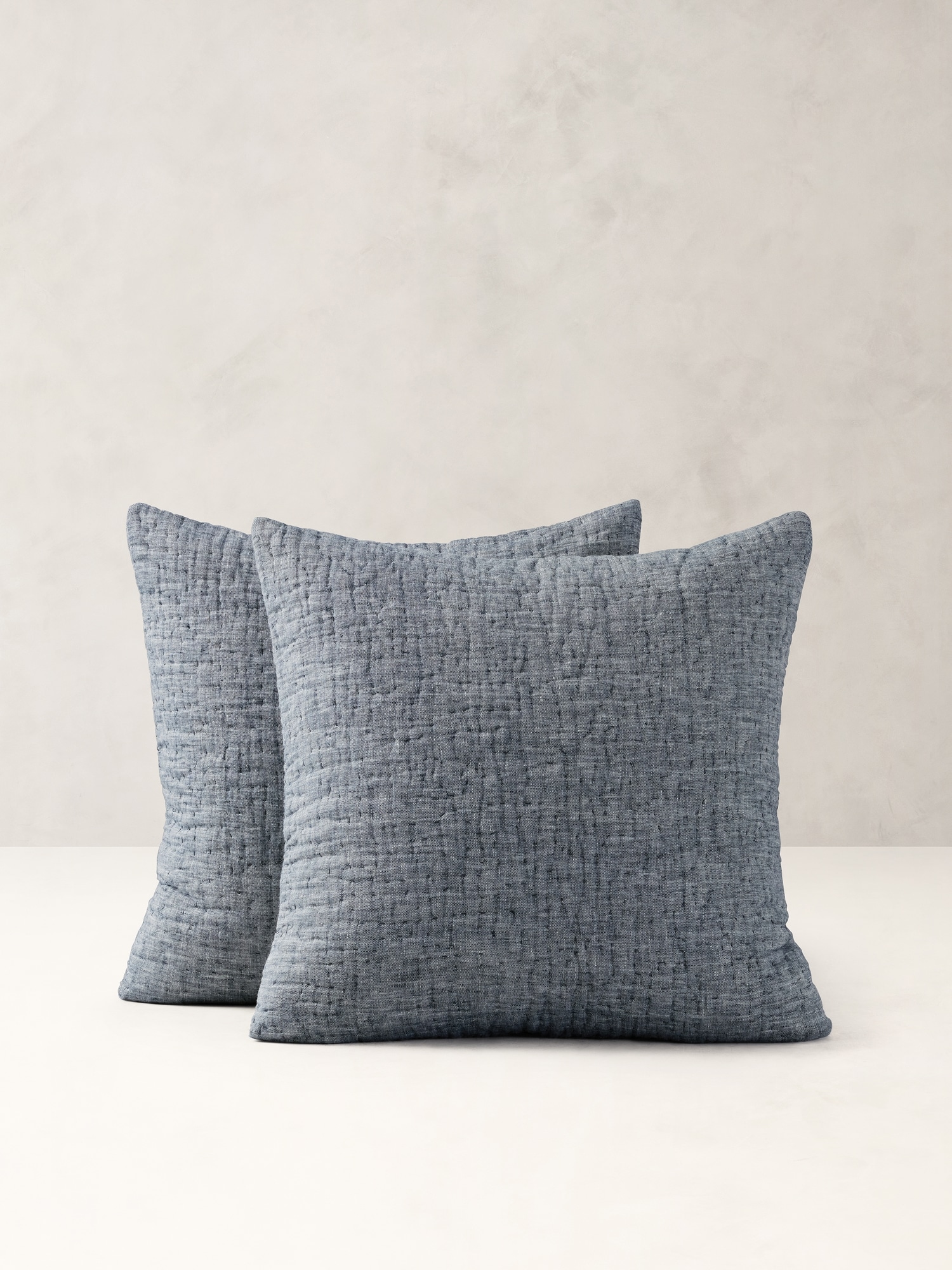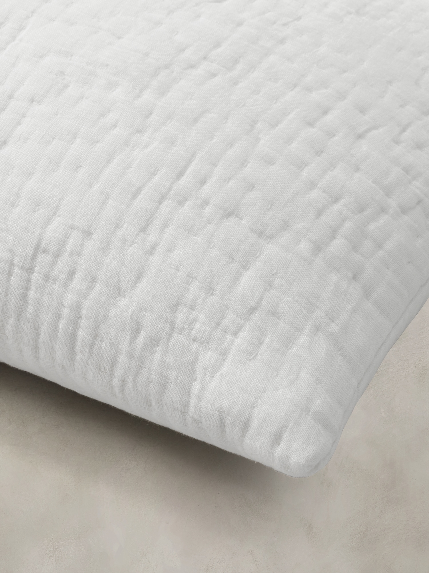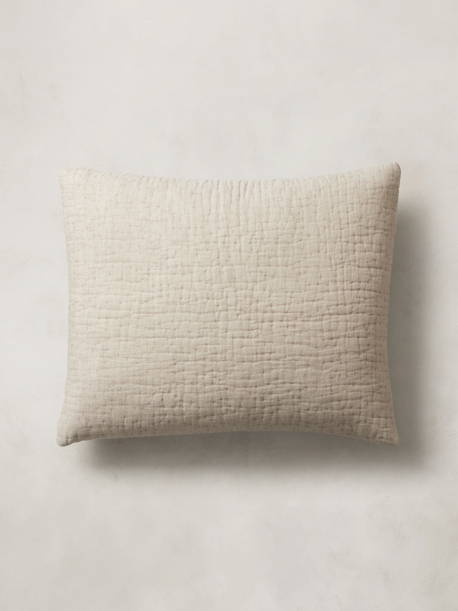 A celebration of natural, textured and gauzy linen. These beautiful shams, combine luxurious linen in a gauzy fabrication with the organic texture of quilting stitches that can only be achieved by hand. The result: a lightweight layer of warmth with a distinctive puckered texture.