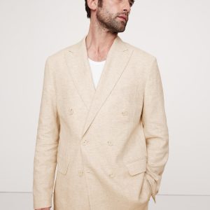 Herringbone Cotton-Linen Double-Breasted Suit Jacket