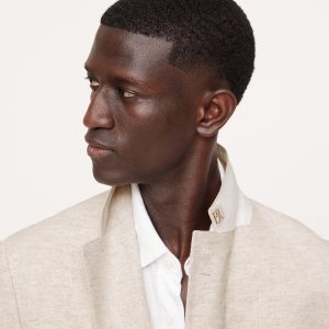 Designed with warm climates in mind, this sleek suit jacket is cut from an herringbone fabric that blends together soft cotton and luxurious linen. Here, we left the jacket unlined through the back for even better breathability.