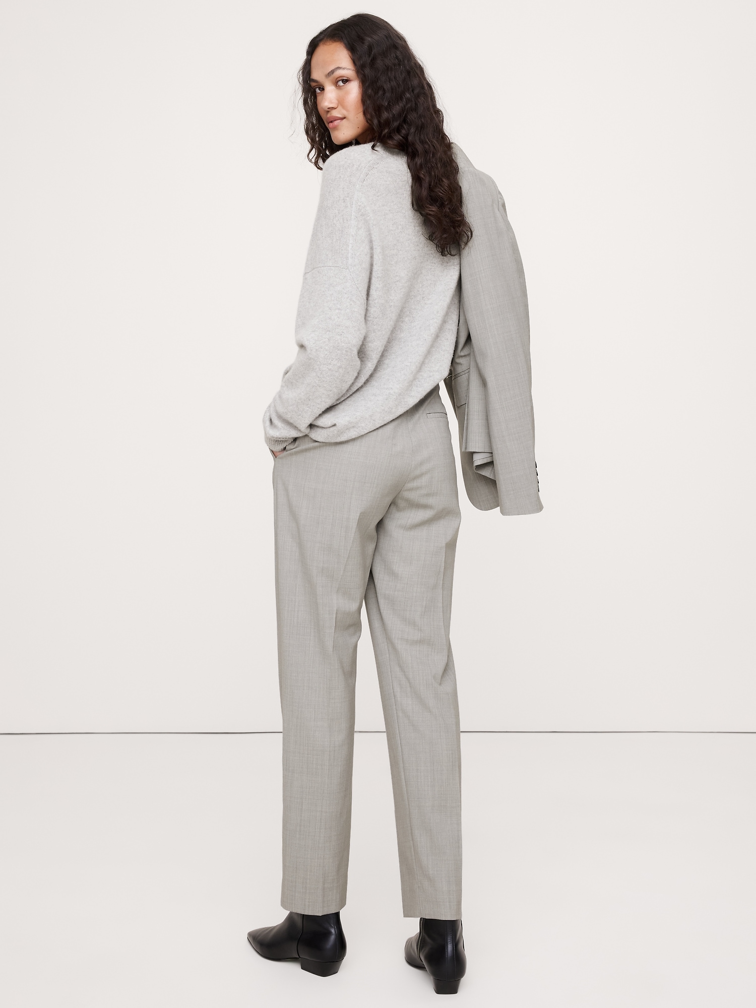 We fell hard for our signature Siena lightweight wool for its all-season weight, subtle stretch, and Italian origins. Here, we cut a slim silhouette with a high-rise and added a trouser crease so it’s giving full-on business formal. Wrinkle-Resistantrise (11.5\”). Fitted waist and hip, semi-fitted through the thigh with a slim leg. Ankle length.