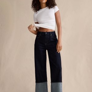 Straight Fit: High-rise (12\”). Relaxed through the hip and thigh with a straight leg. Ankle length.