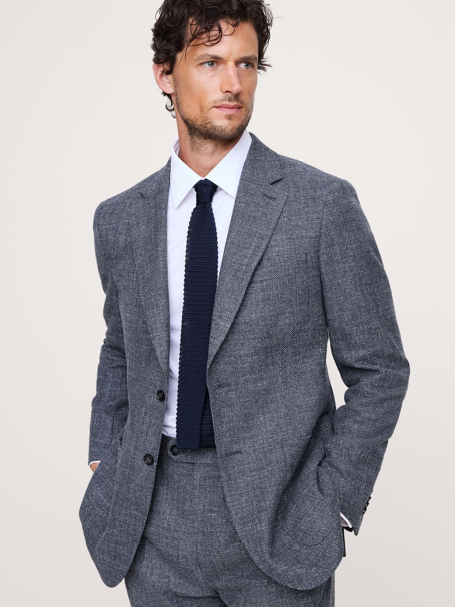 Tailored Slim Fit: Sits at the natural shoulder with an Italian-style soft shoulder expression. Fitted through the chest and waist.
