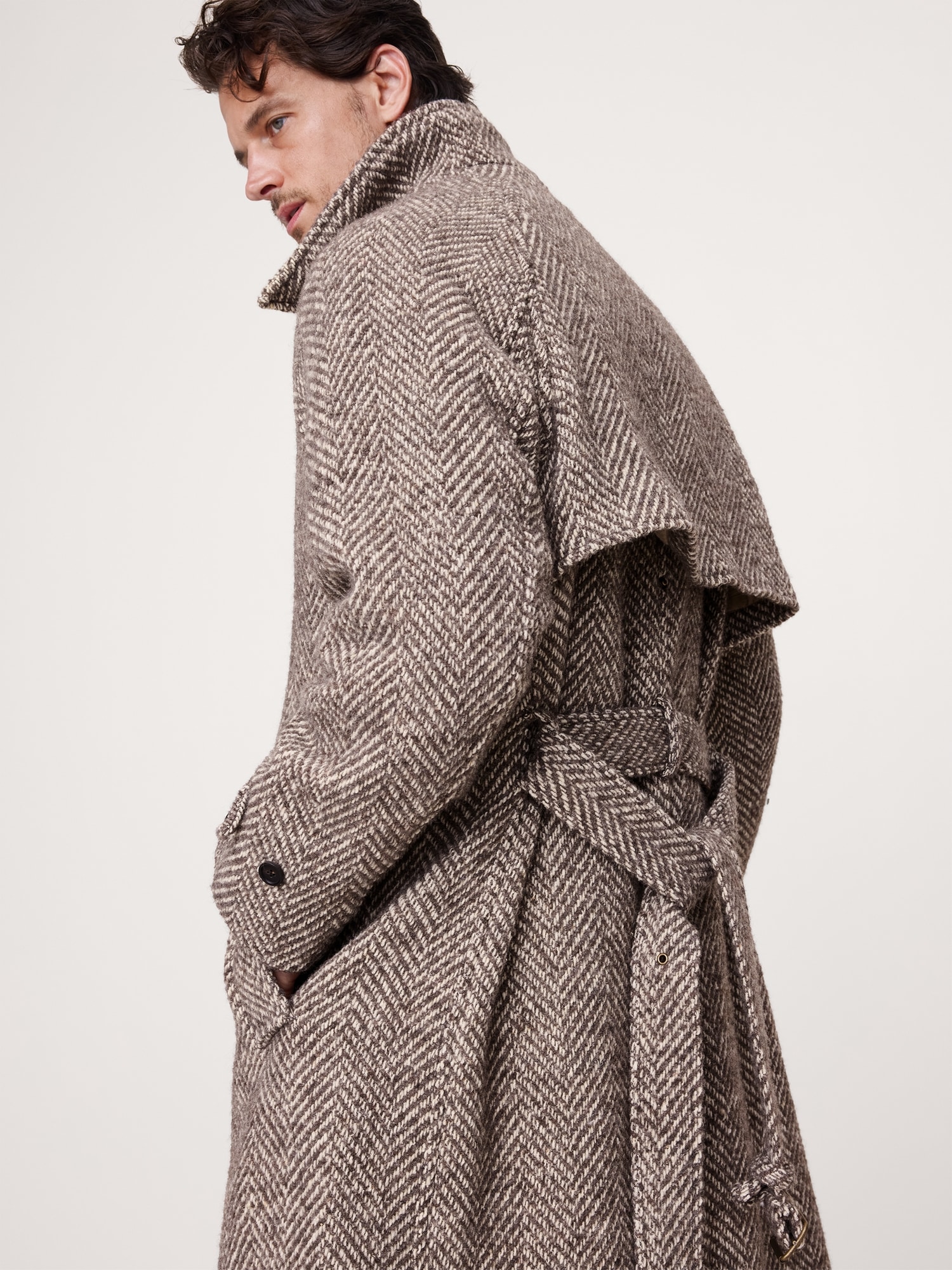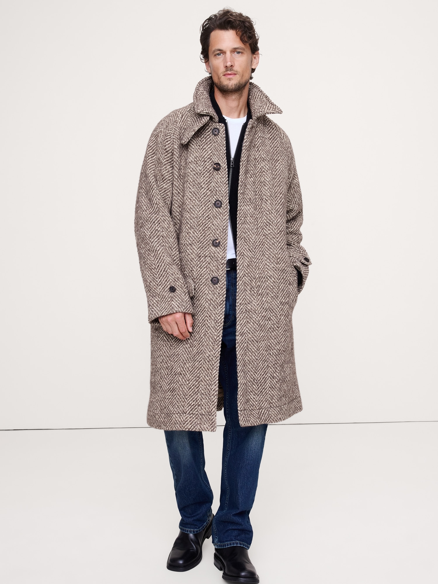 Italian Herringbone Balmacaan Coat
