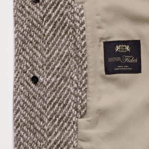 Modeled after the traditional Balmacaan coat, this piece is cut from an Italian, wool-blend fabric woven in a herringbone pattern with a beautiful tweed-like finish.